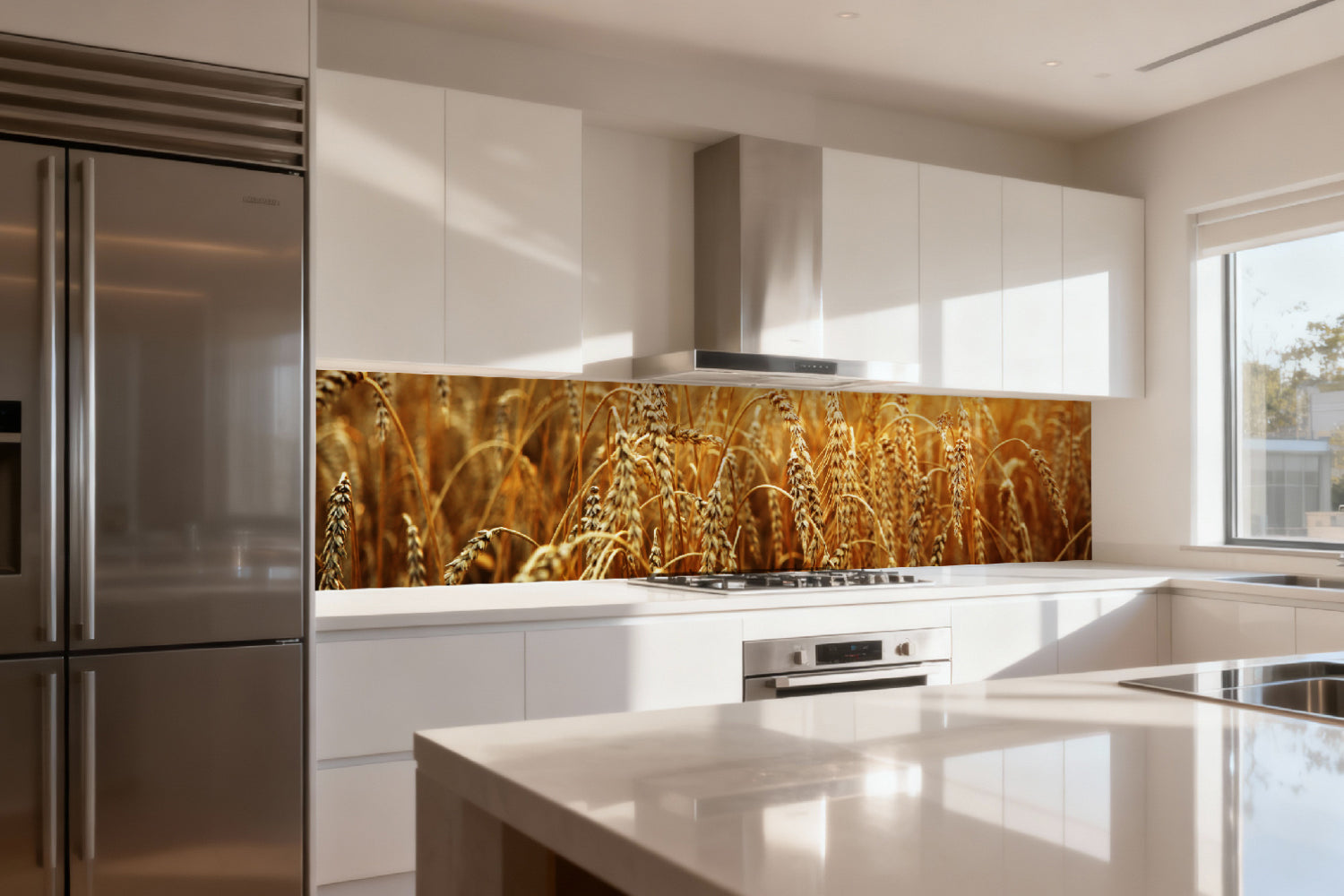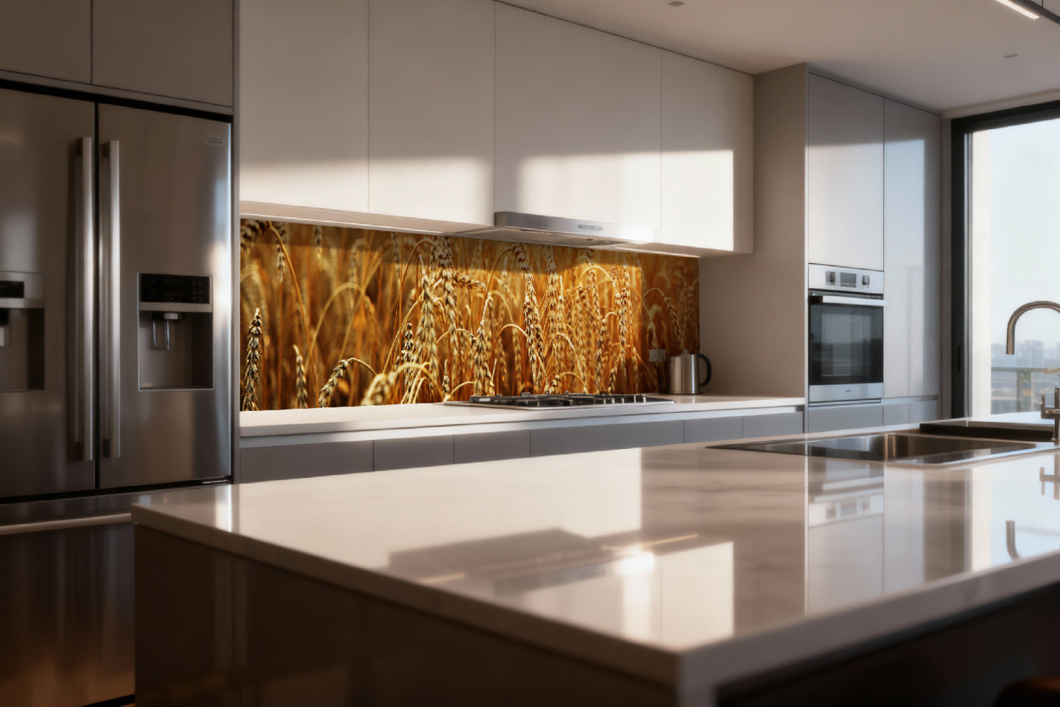 Die glänzende Variante überzeugt mit intensiver Strahlkraft und einem beeindruckenden Tiefeneffekt. Farben und Motive wirken kräftiger, lebendiger und besonders detailreich. Durch die hochglänzende Oberfläche entsteht ein edler Glanz, der Licht reflektiert und dem Raum zusätzliche Helligkeit sowie ein luxuriöses Ambiente verleiht. Eine glänzende Rückwand eignet sich ideal, wenn Sie einen modernen, repräsentativen Look mit besonderer Ausdrucksstärke erzielen möchten.