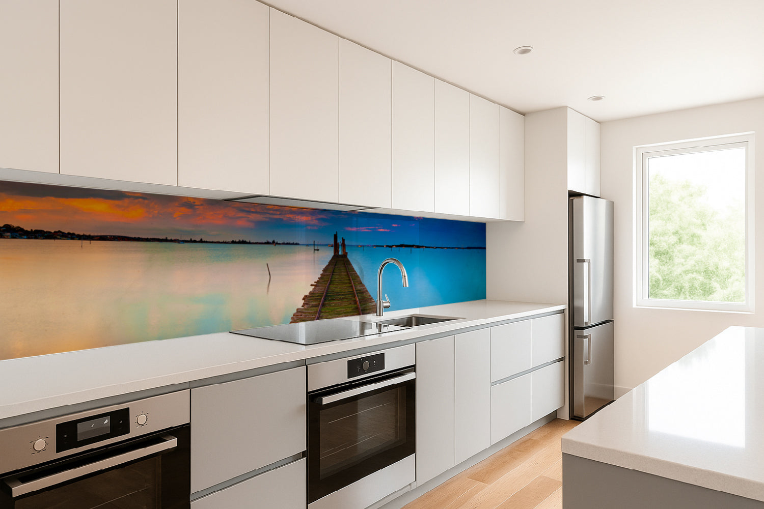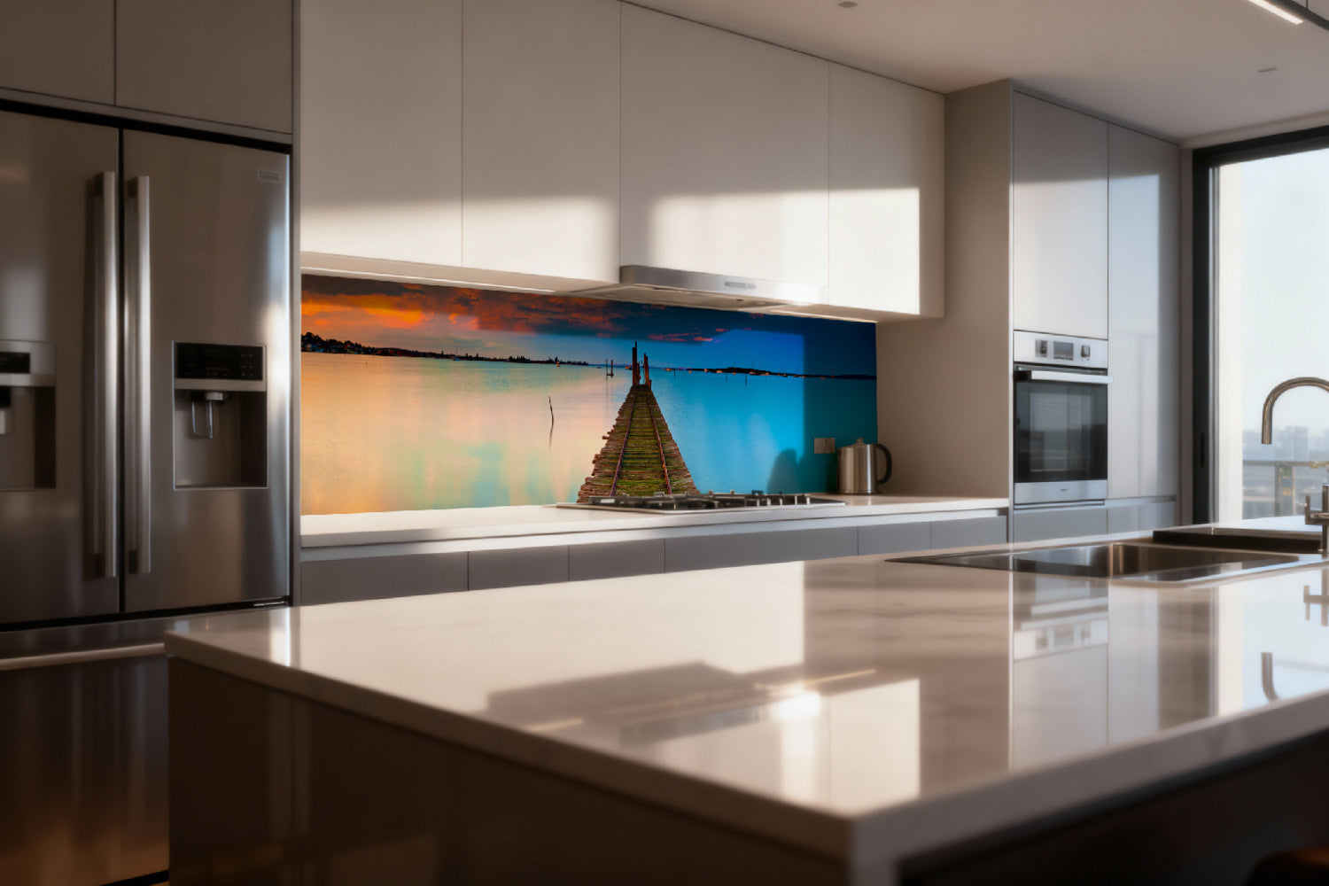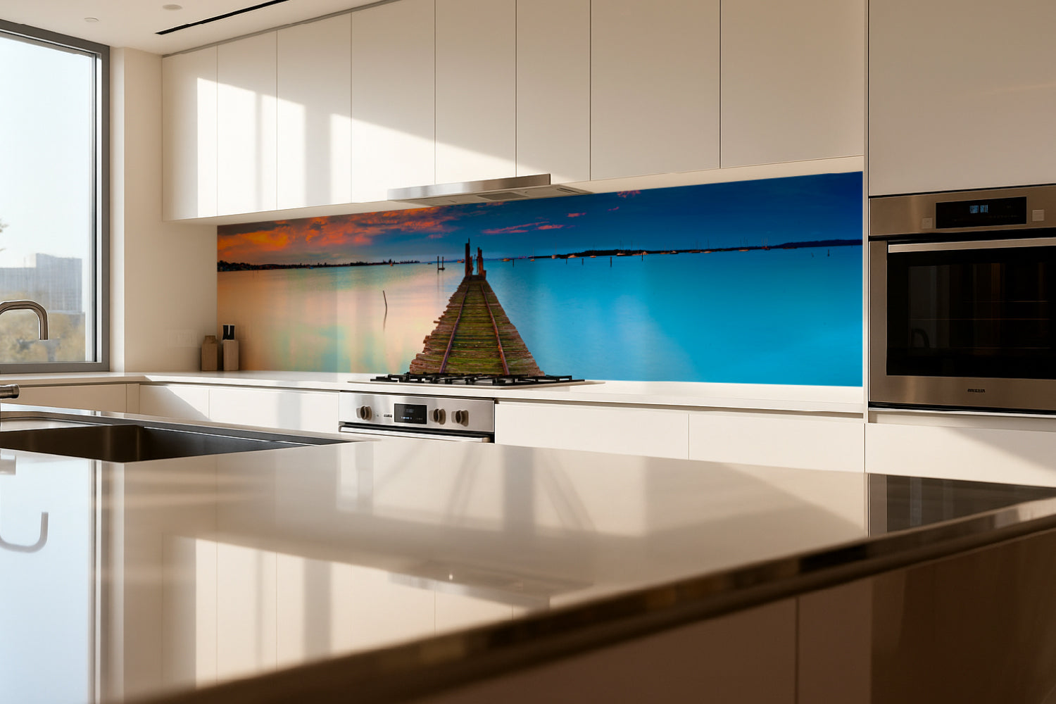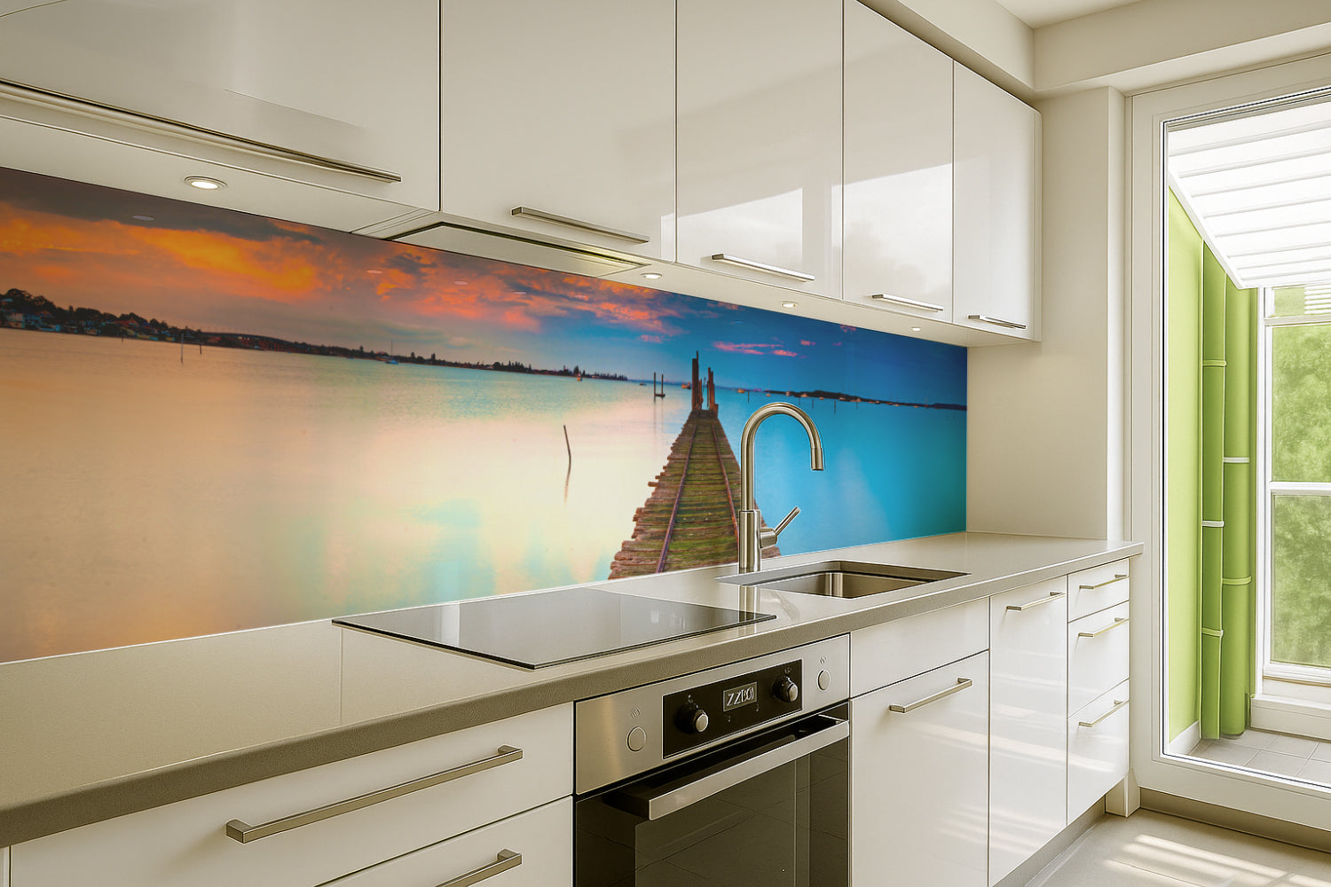 Die glänzende Variante überzeugt mit intensiver Strahlkraft und einem beeindruckenden Tiefeneffekt. Farben und Motive wirken kräftiger, lebendiger und besonders detailreich. Durch die hochglänzende Oberfläche entsteht ein edler Glanz, der Licht reflektiert und dem Raum zusätzliche Helligkeit sowie ein luxuriöses Ambiente verleiht. Eine glänzende Rückwand eignet sich ideal, wenn Sie einen modernen, repräsentativen Look mit besonderer Ausdrucksstärke erzielen möchten.