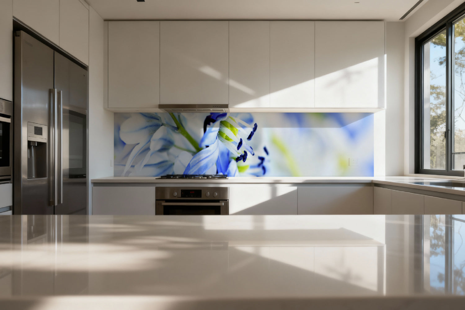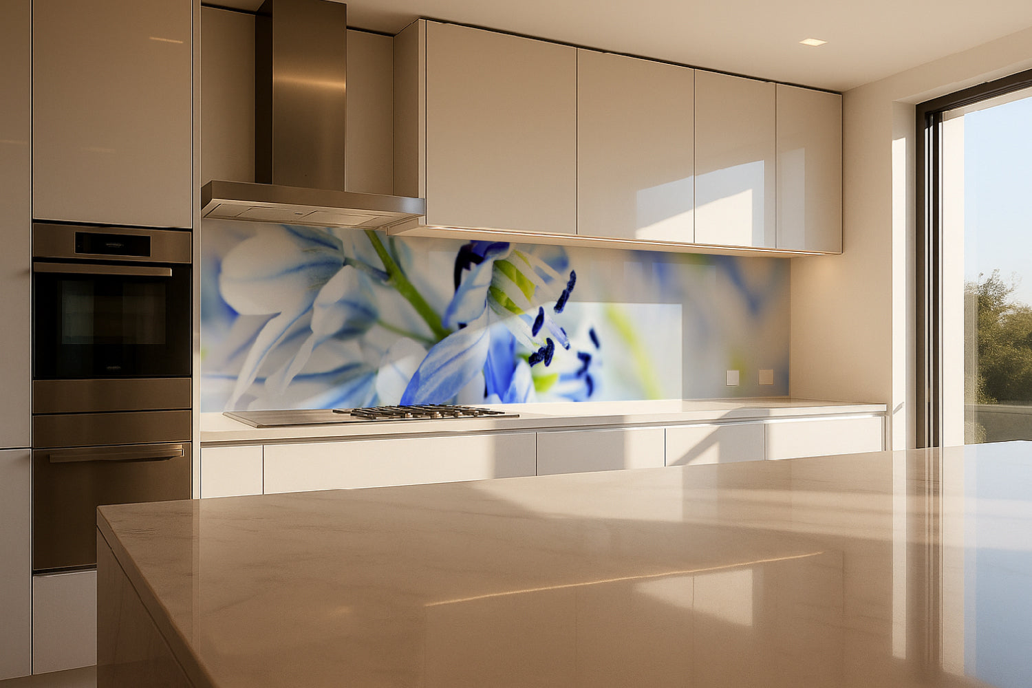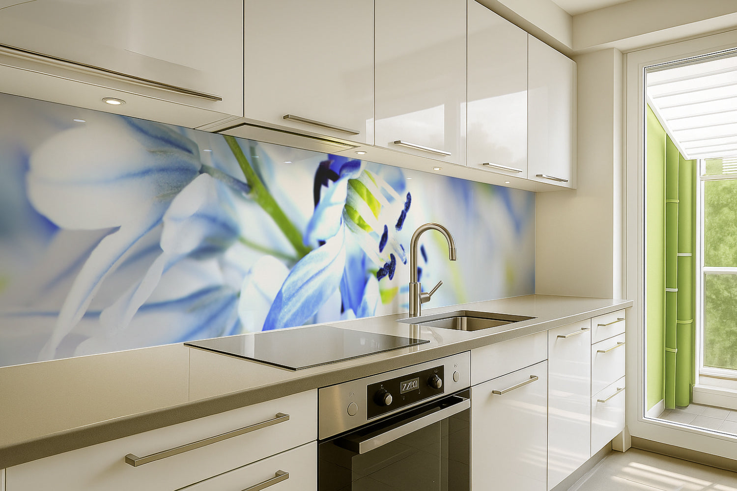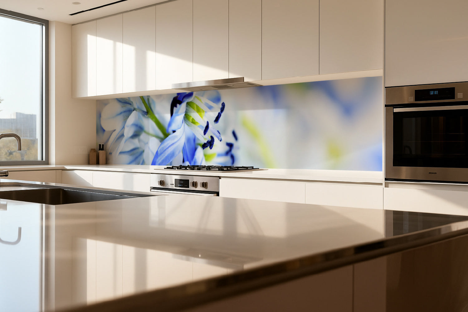 Die glänzende Variante überzeugt mit intensiver Strahlkraft und einem beeindruckenden Tiefeneffekt. Farben und Motive wirken kräftiger, lebendiger und besonders detailreich. Durch die hochglänzende Oberfläche entsteht ein edler Glanz, der Licht reflektiert und dem Raum zusätzliche Helligkeit sowie ein luxuriöses Ambiente verleiht. Eine glänzende Rückwand eignet sich ideal, wenn Sie einen modernen, repräsentativen Look mit besonderer Ausdrucksstärke erzielen möchten.