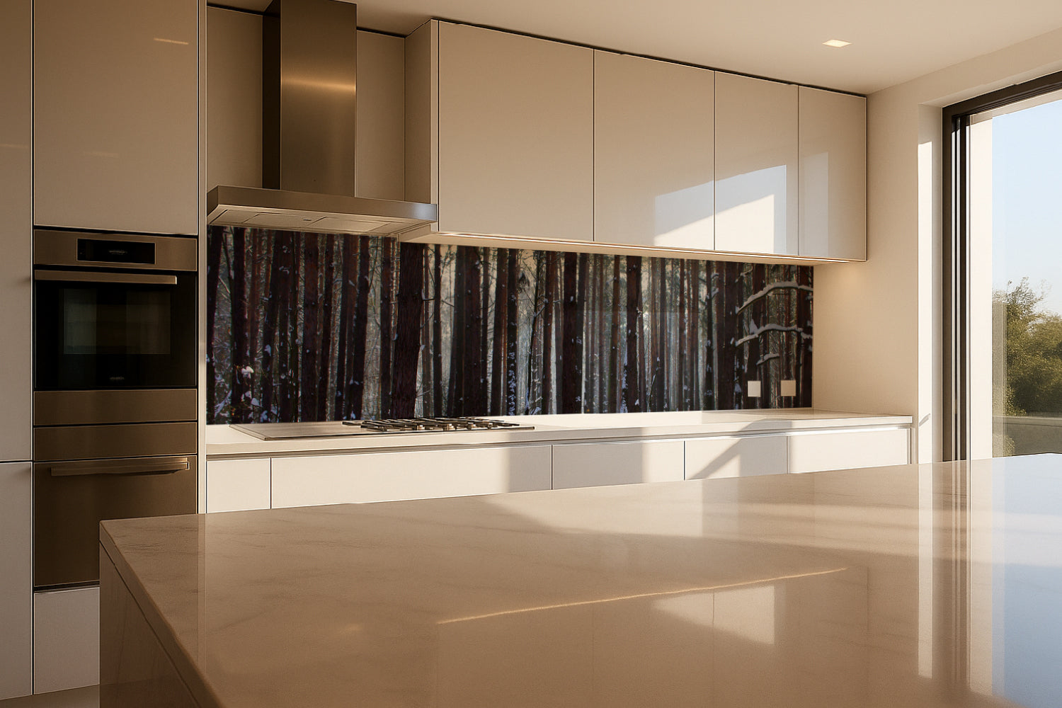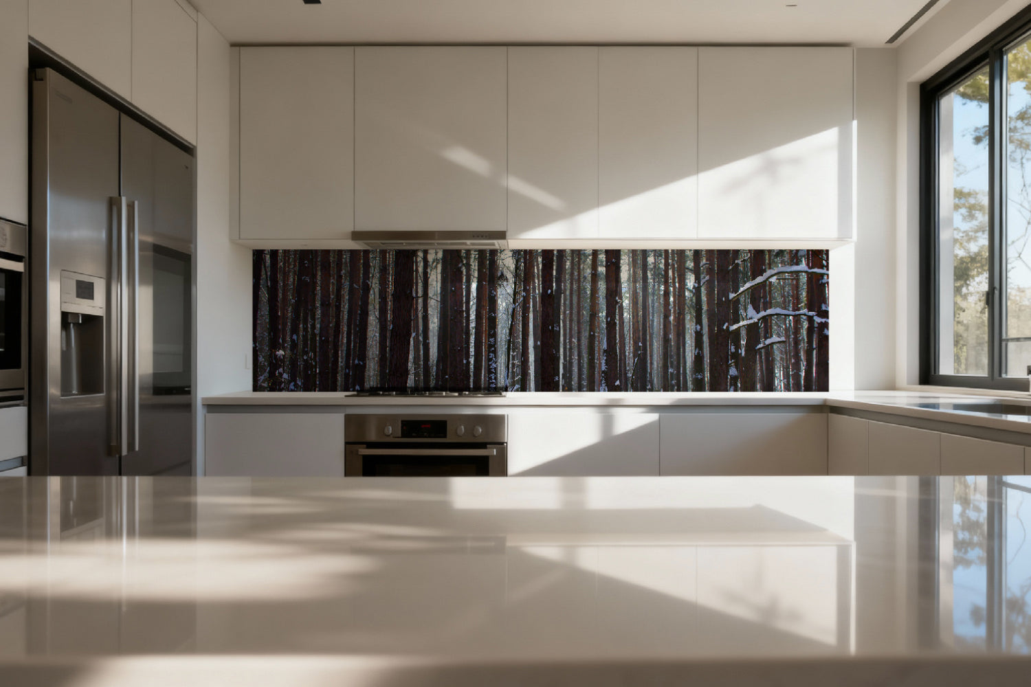 Die glänzende Variante überzeugt mit intensiver Strahlkraft und einem beeindruckenden Tiefeneffekt. Farben und Motive wirken kräftiger, lebendiger und besonders detailreich. Durch die hochglänzende Oberfläche entsteht ein edler Glanz, der Licht reflektiert und dem Raum zusätzliche Helligkeit sowie ein luxuriöses Ambiente verleiht. Eine glänzende Rückwand eignet sich ideal, wenn Sie einen modernen, repräsentativen Look mit besonderer Ausdrucksstärke erzielen möchten.