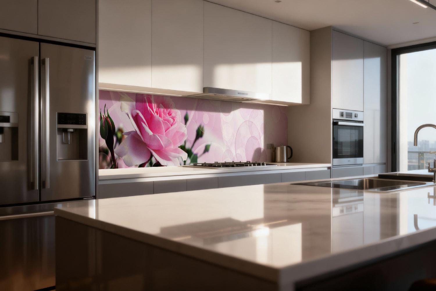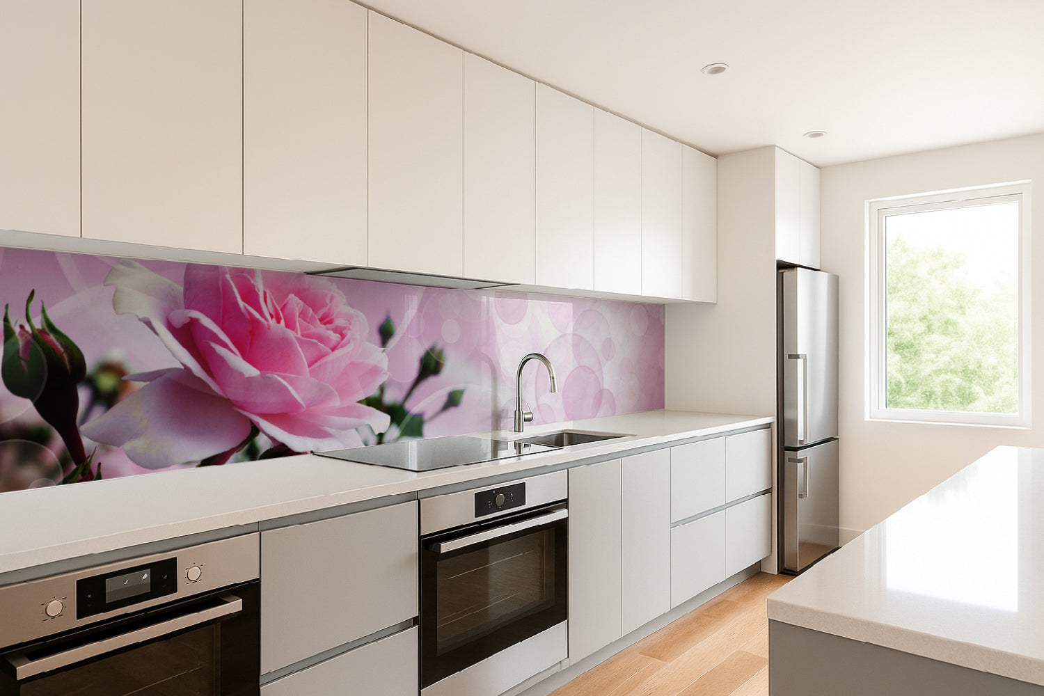 Küchenrückwand mit Rosenmotiv