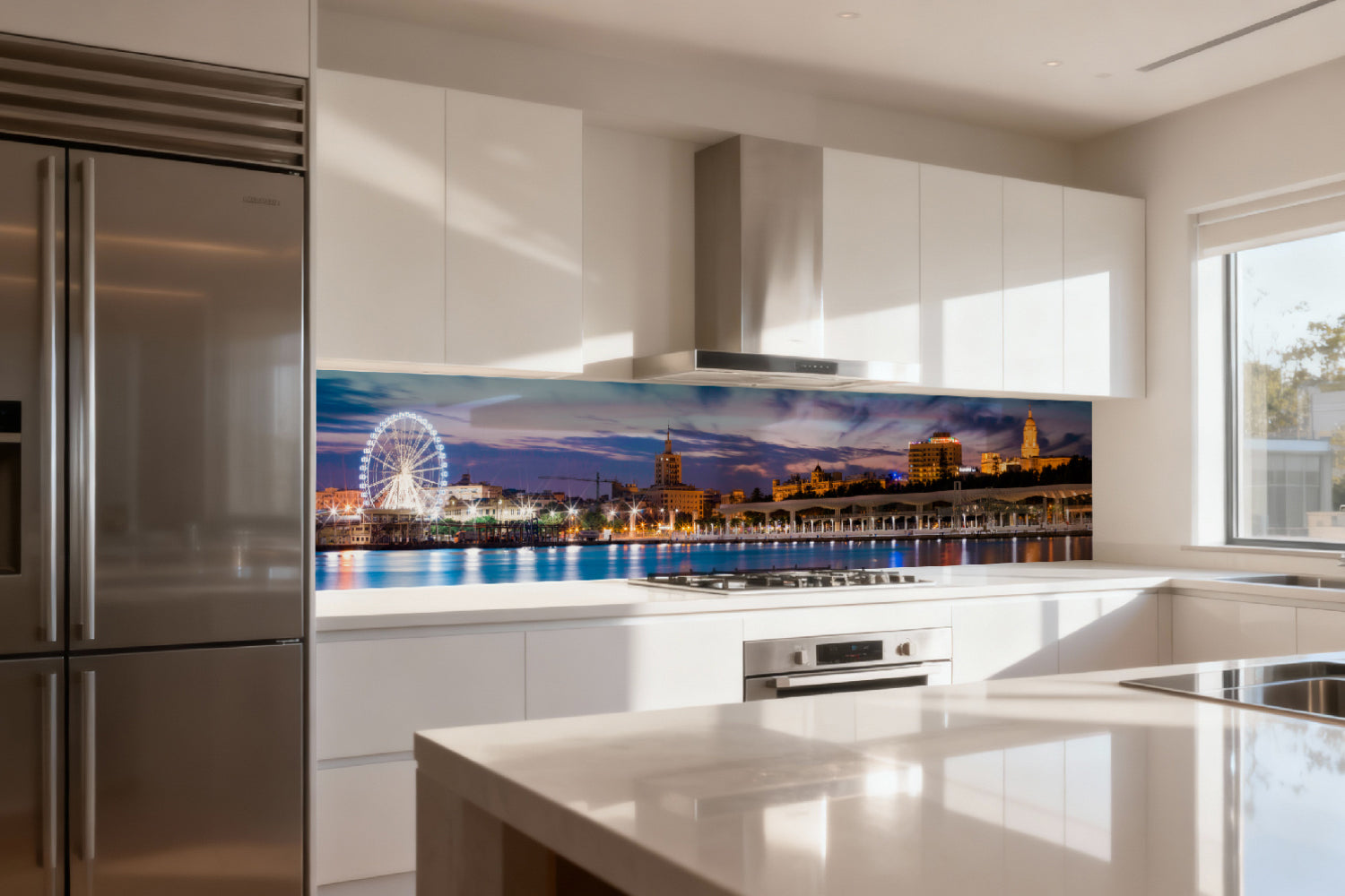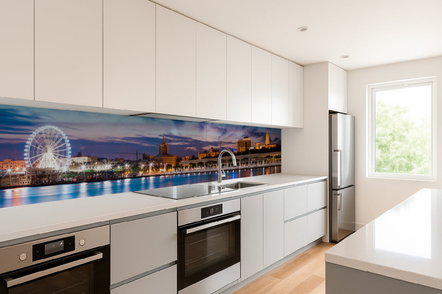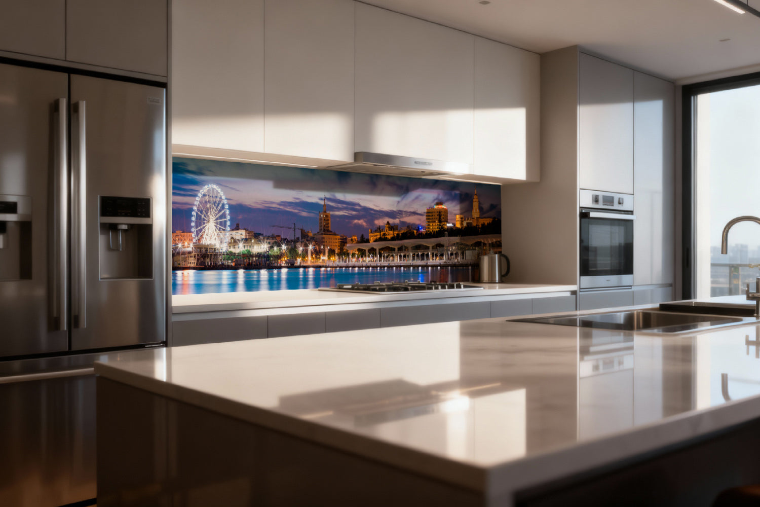 Die glänzende Variante überzeugt mit intensiver Strahlkraft und einem beeindruckenden Tiefeneffekt. Farben und Motive wirken kräftiger, lebendiger und besonders detailreich. Durch die hochglänzende Oberfläche entsteht ein edler Glanz, der Licht reflektiert und dem Raum zusätzliche Helligkeit sowie ein luxuriöses Ambiente verleiht. Eine glänzende Rückwand eignet sich ideal, wenn Sie einen modernen, repräsentativen Look mit besonderer Ausdrucksstärke erzielen möchten.