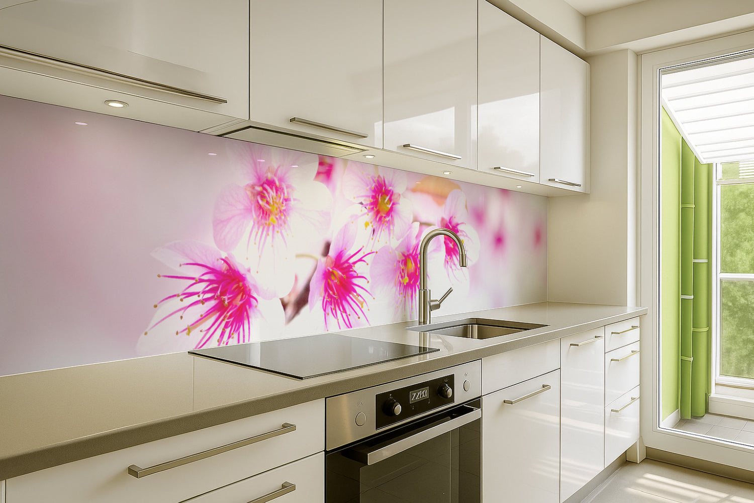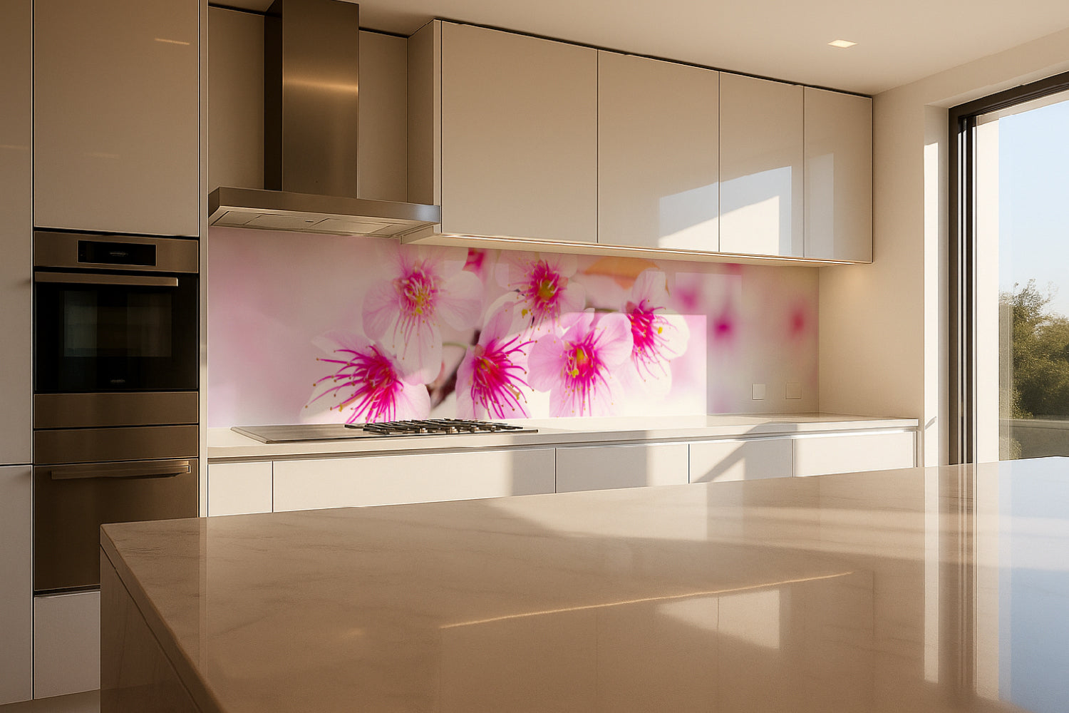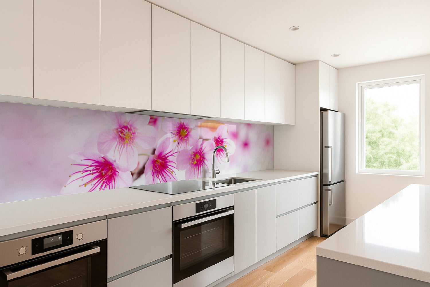 Küchenrückwand mit Kirschblüten