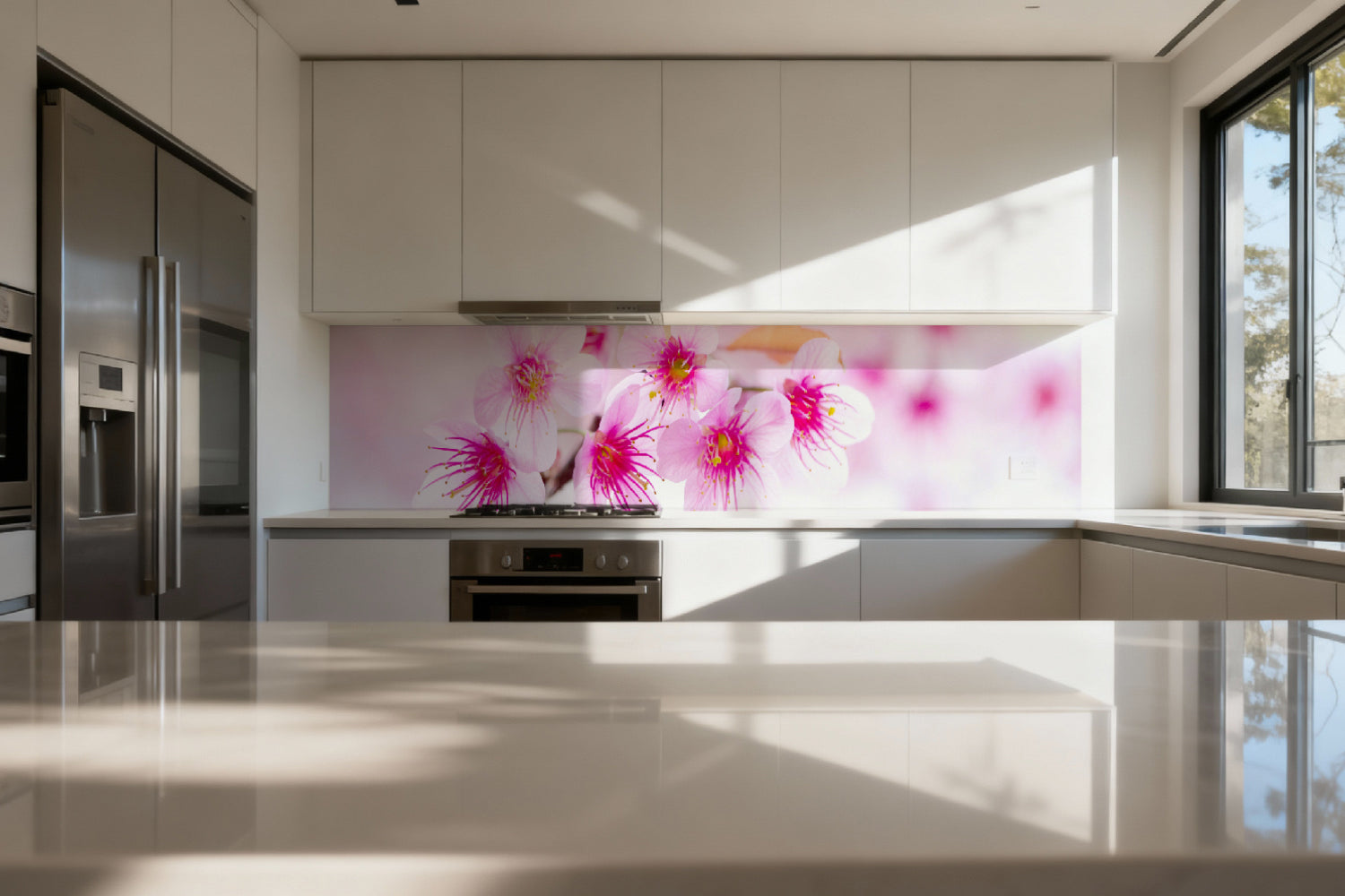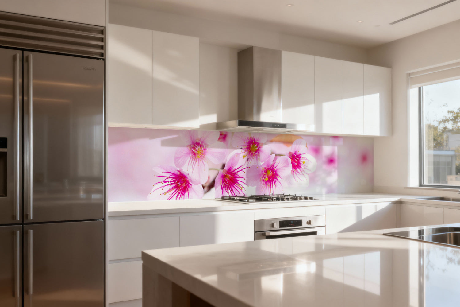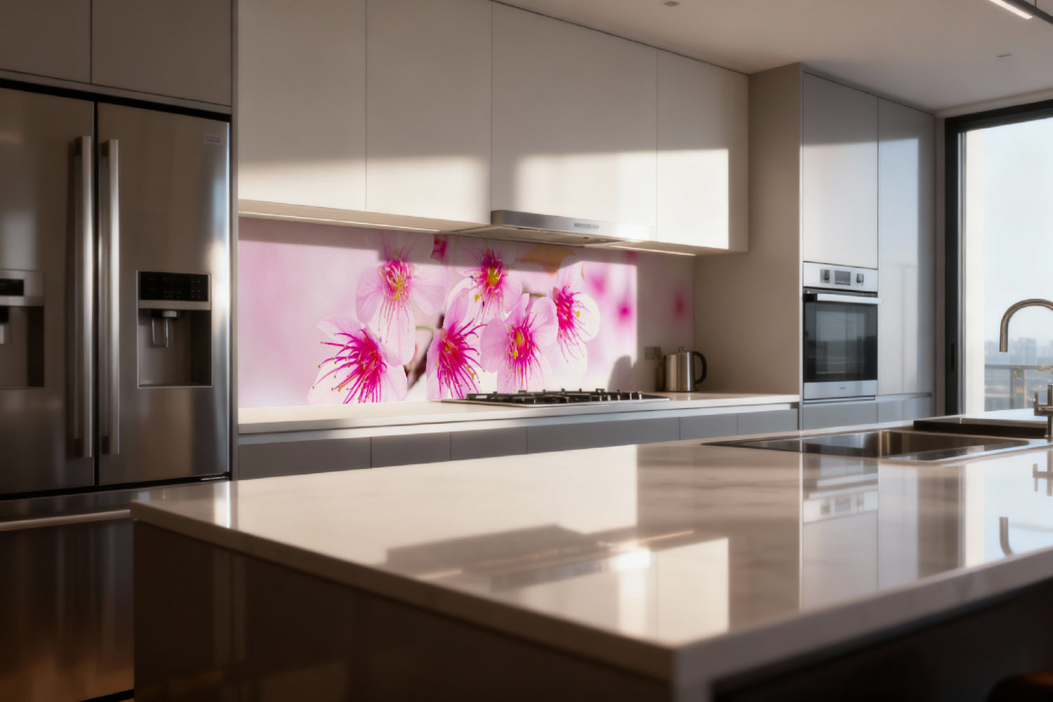 Küchenrückwand mit Kirschblüten