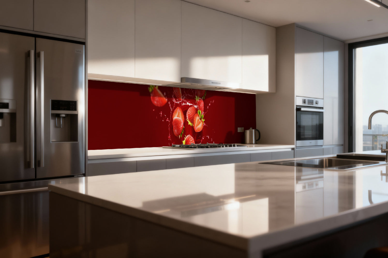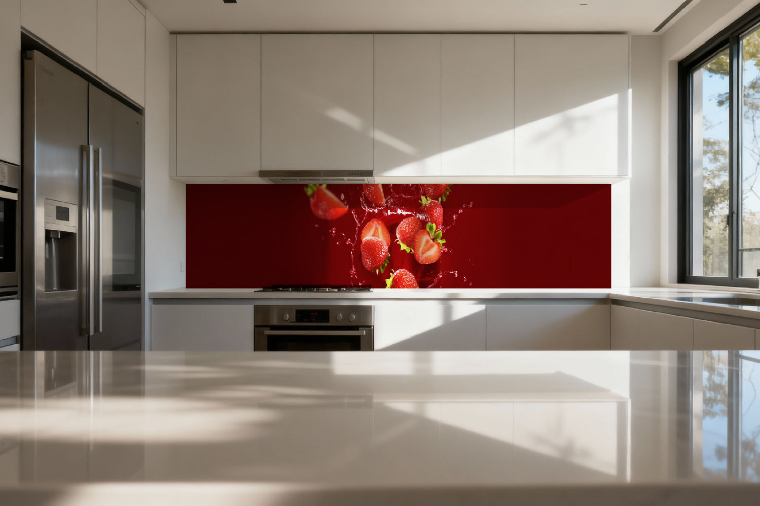 Die glänzende Variante überzeugt mit intensiver Strahlkraft und einem beeindruckenden Tiefeneffekt. Farben und Motive wirken kräftiger, lebendiger und besonders detailreich. Durch die hochglänzende Oberfläche entsteht ein edler Glanz, der Licht reflektiert und dem Raum zusätzliche Helligkeit sowie ein luxuriöses Ambiente verleiht. Eine glänzende Rückwand eignet sich ideal, wenn Sie einen modernen, repräsentativen Look mit besonderer Ausdrucksstärke erzielen möchten.