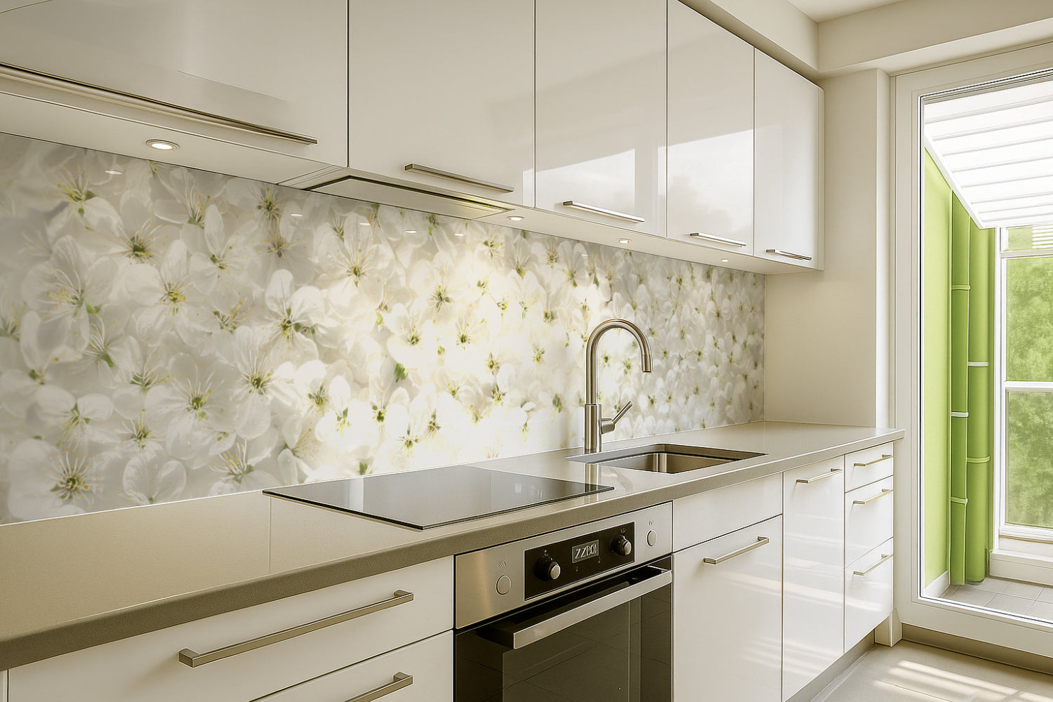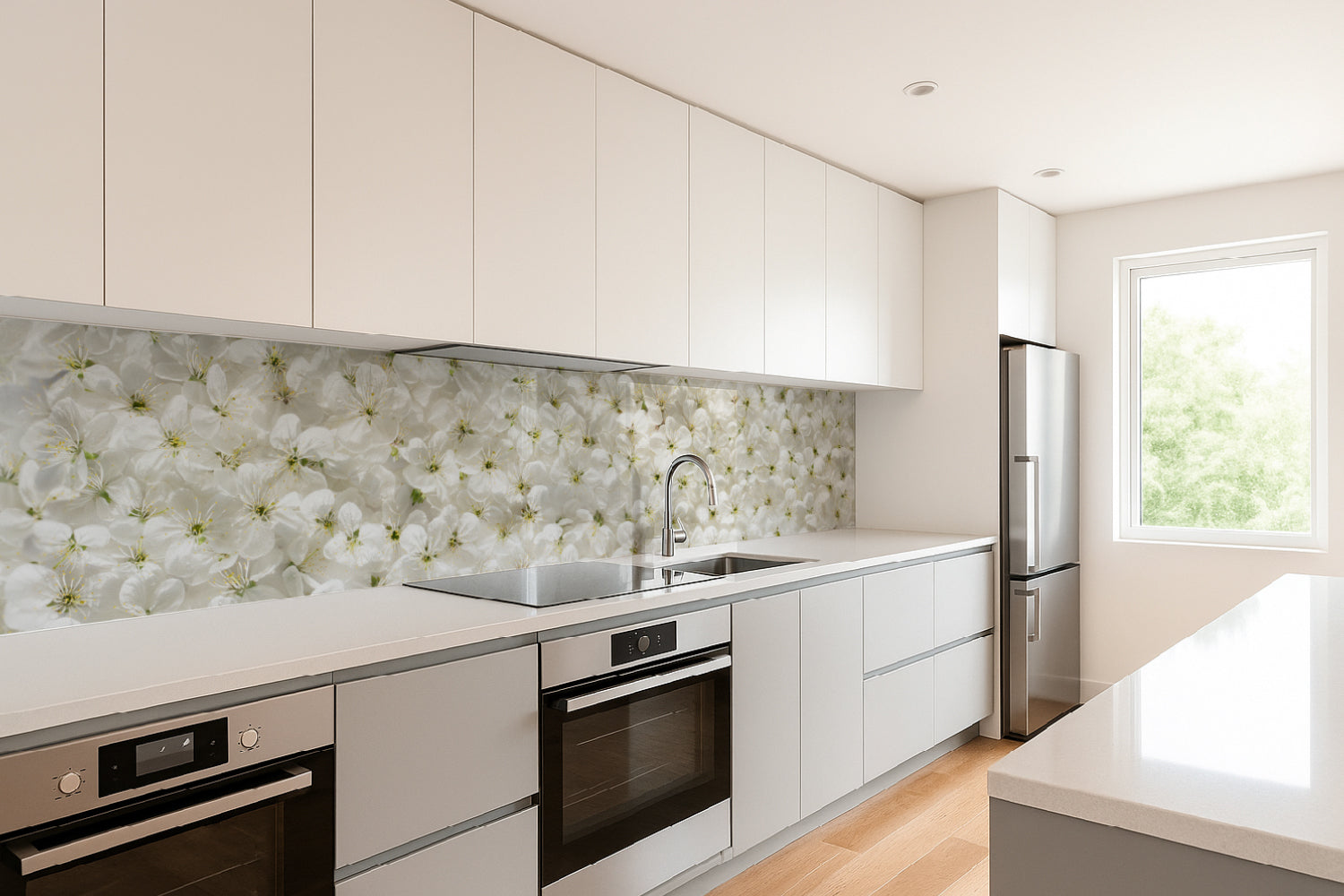 Küchenrückwand Blütenmeer Weiß