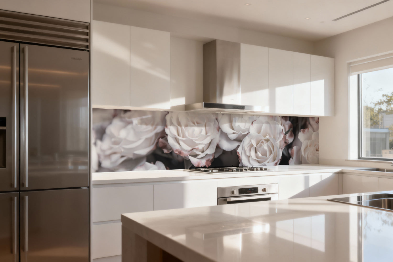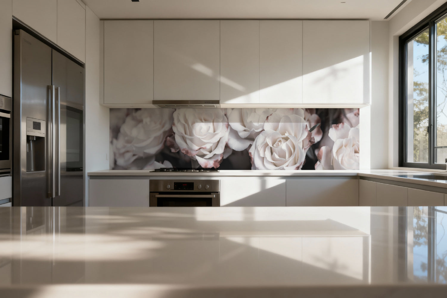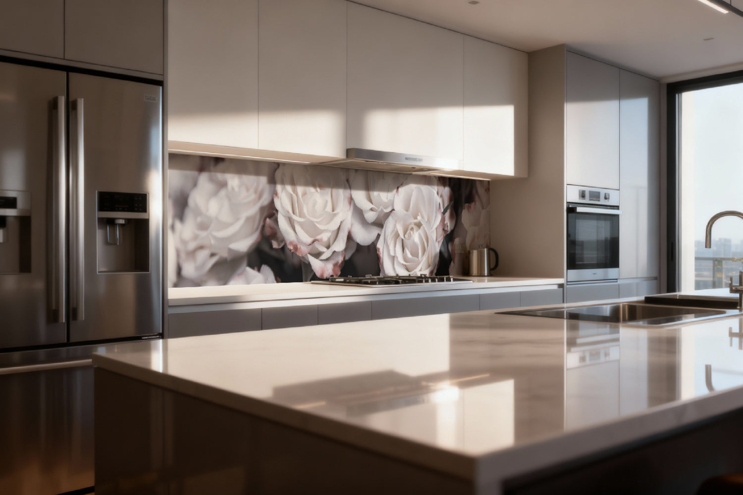 Die glänzende Variante überzeugt mit intensiver Strahlkraft und einem beeindruckenden Tiefeneffekt. Farben und Motive wirken kräftiger, lebendiger und besonders detailreich. Durch die hochglänzende Oberfläche entsteht ein edler Glanz, der Licht reflektiert und dem Raum zusätzliche Helligkeit sowie ein luxuriöses Ambiente verleiht. Eine glänzende Rückwand eignet sich ideal, wenn Sie einen modernen, repräsentativen Look mit besonderer Ausdrucksstärke erzielen möchten.