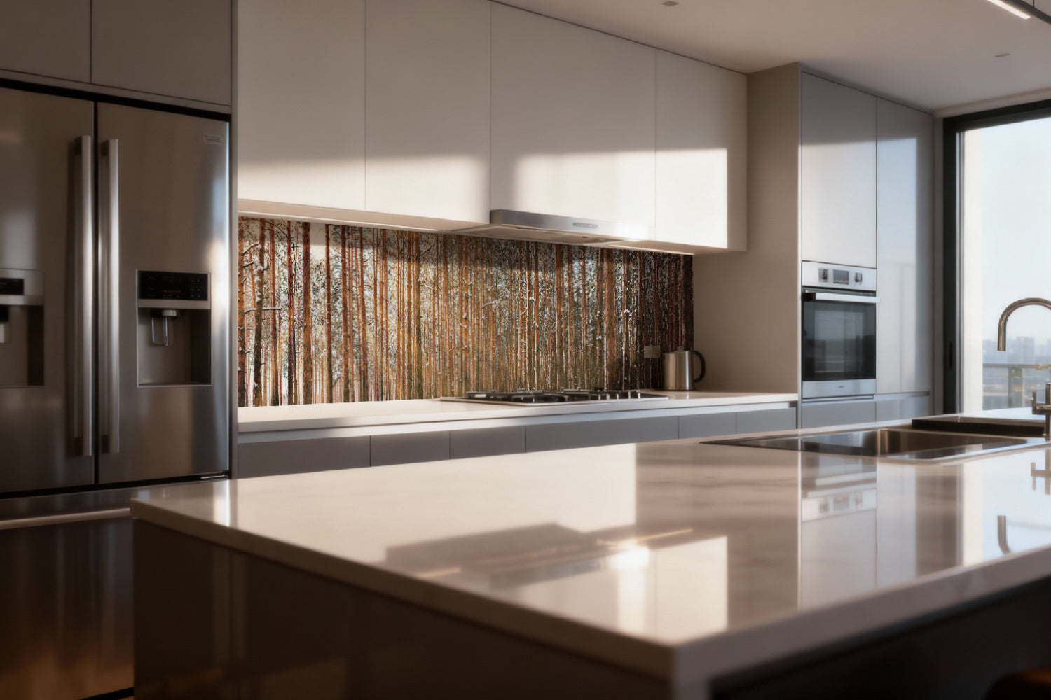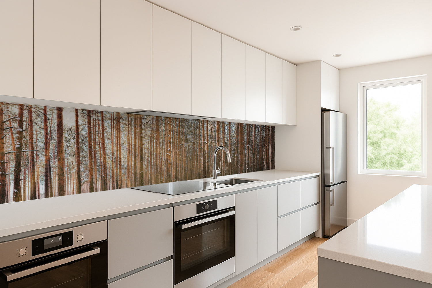 Die glänzende Variante überzeugt mit intensiver Strahlkraft und einem beeindruckenden Tiefeneffekt. Farben und Motive wirken kräftiger, lebendiger und besonders detailreich. Durch die hochglänzende Oberfläche entsteht ein edler Glanz, der Licht reflektiert und dem Raum zusätzliche Helligkeit sowie ein luxuriöses Ambiente verleiht. Eine glänzende Rückwand eignet sich ideal, wenn Sie einen modernen, repräsentativen Look mit besonderer Ausdrucksstärke erzielen möchten.