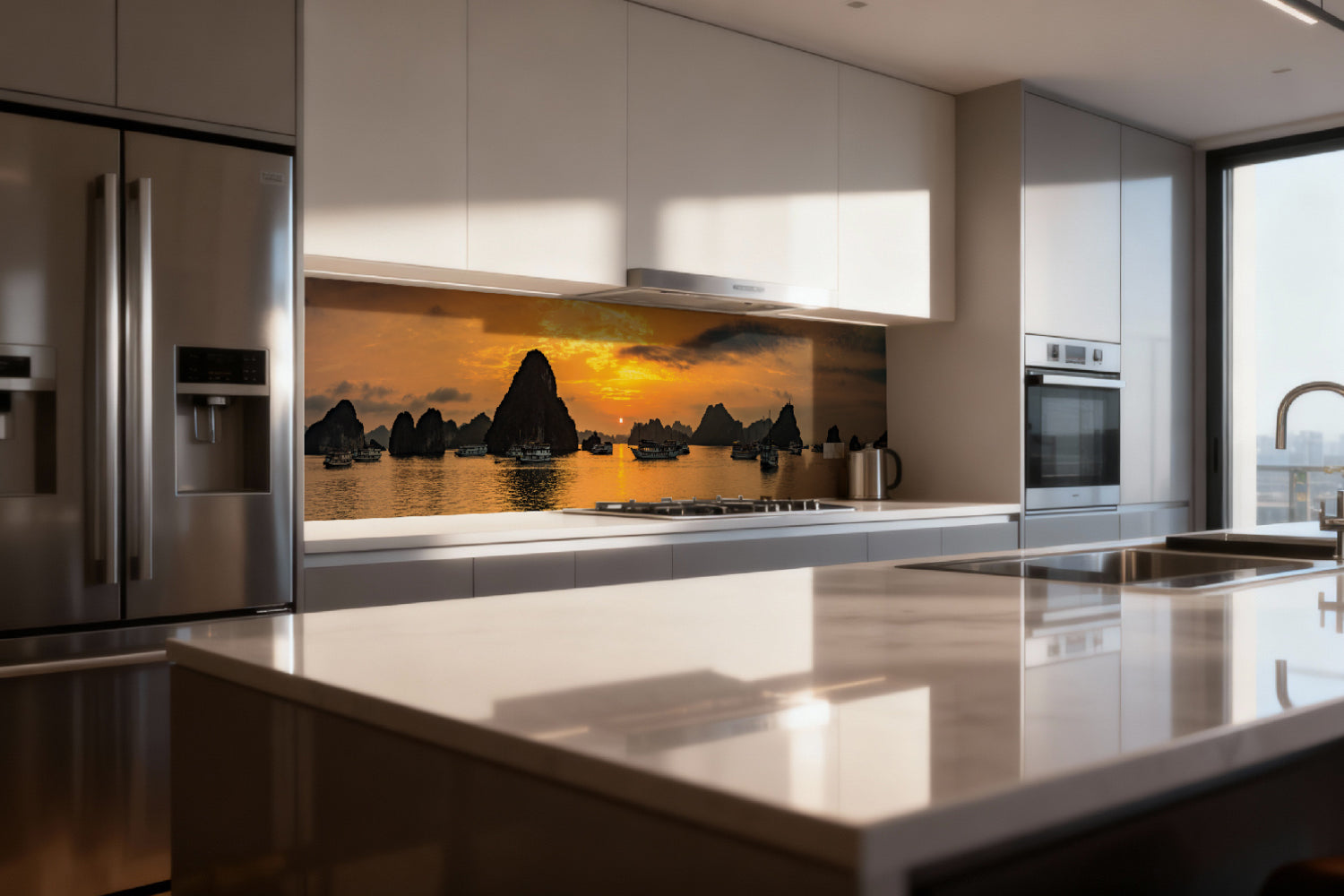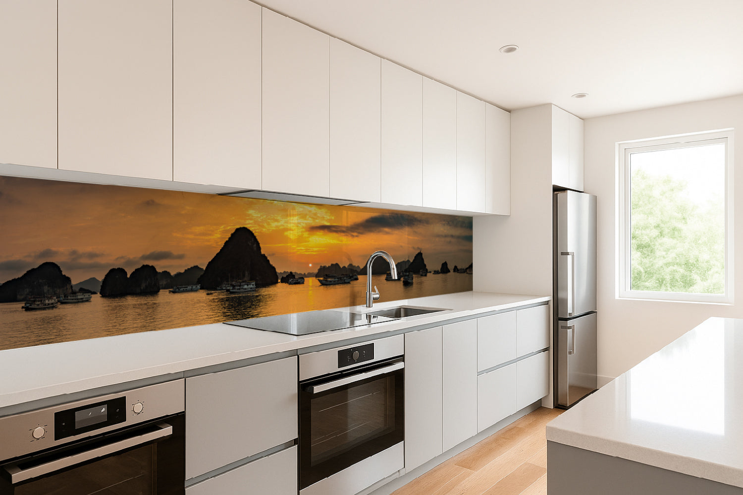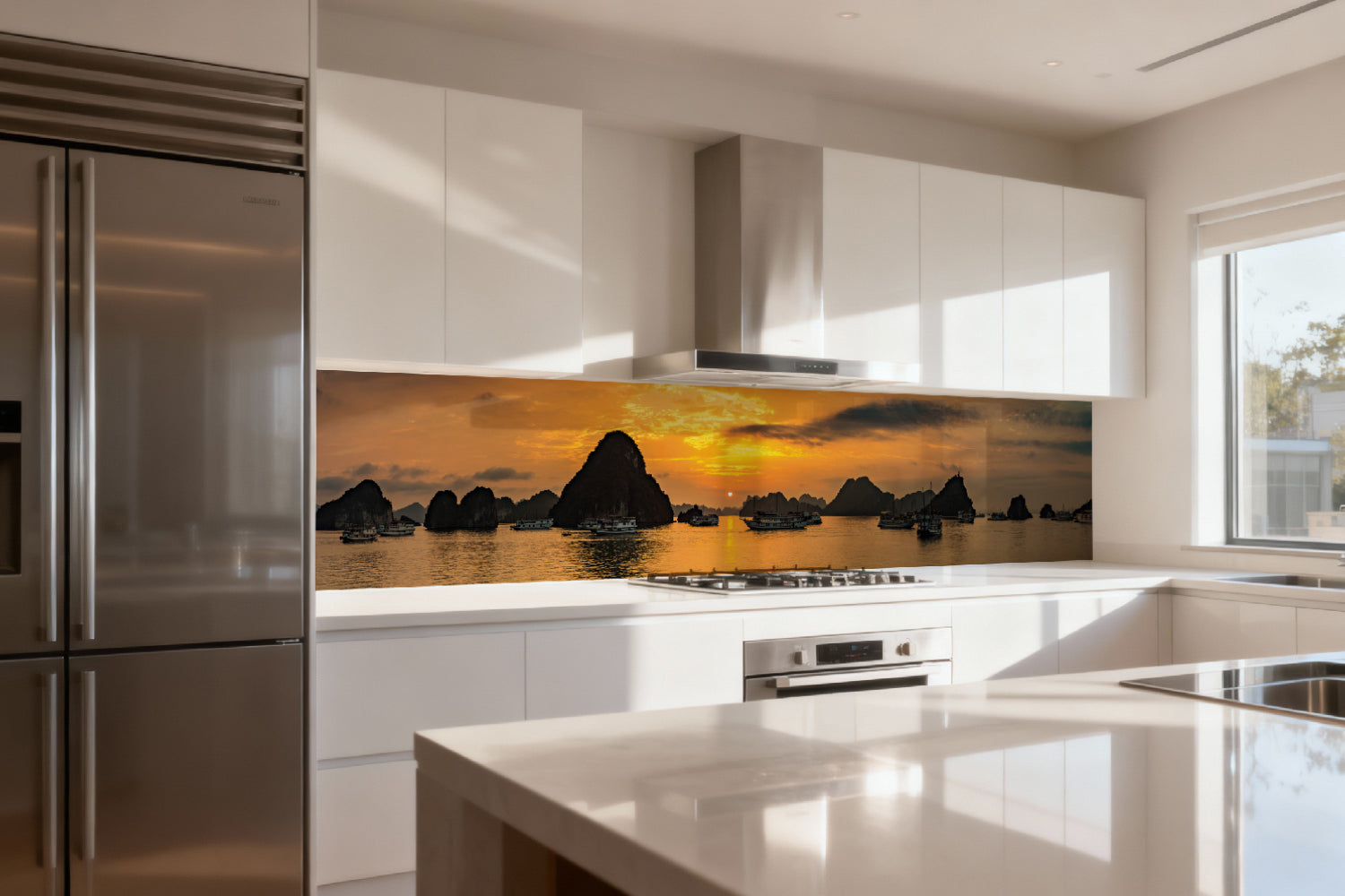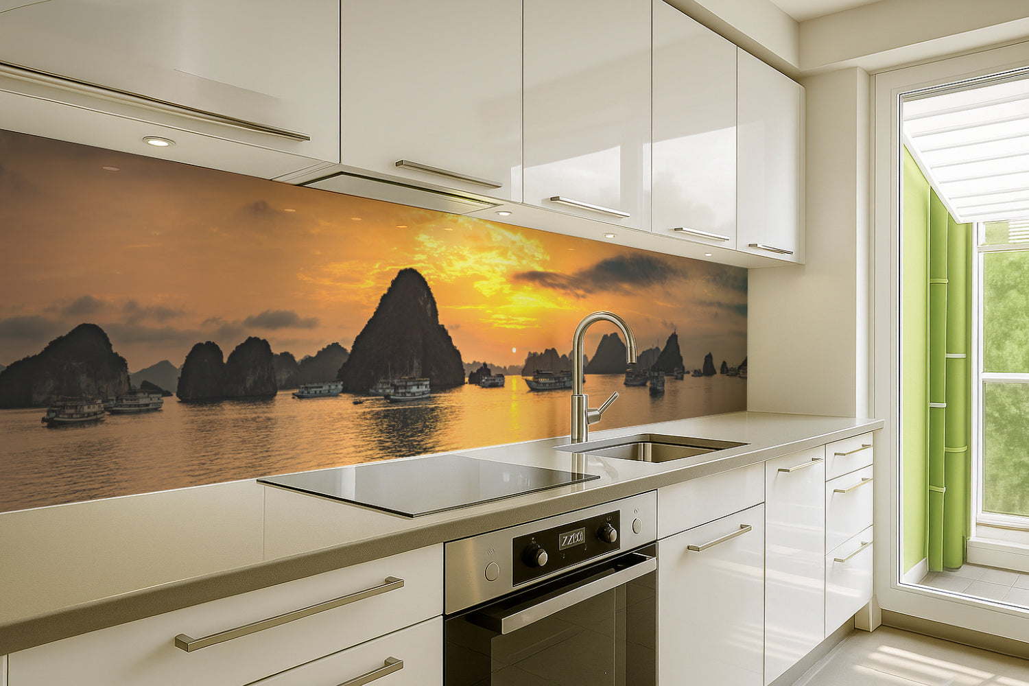 Die glänzende Variante überzeugt mit intensiver Strahlkraft und einem beeindruckenden Tiefeneffekt. Farben und Motive wirken kräftiger, lebendiger und besonders detailreich. Durch die hochglänzende Oberfläche entsteht ein edler Glanz, der Licht reflektiert und dem Raum zusätzliche Helligkeit sowie ein luxuriöses Ambiente verleiht. Eine glänzende Rückwand eignet sich ideal, wenn Sie einen modernen, repräsentativen Look mit besonderer Ausdrucksstärke erzielen möchten.