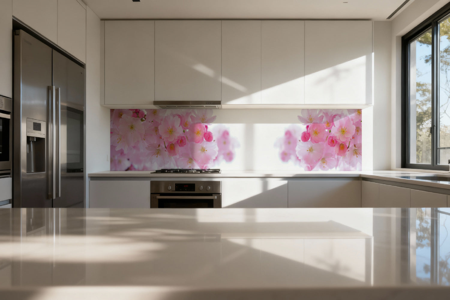 Die glänzende Variante überzeugt mit intensiver Strahlkraft und einem beeindruckenden Tiefeneffekt. Farben und Motive wirken kräftiger, lebendiger und besonders detailreich. Durch die hochglänzende Oberfläche entsteht ein edler Glanz, der Licht reflektiert und dem Raum zusätzliche Helligkeit sowie ein luxuriöses Ambiente verleiht. Eine glänzende Rückwand eignet sich ideal, wenn Sie einen modernen, repräsentativen Look mit besonderer Ausdrucksstärke erzielen möchten.