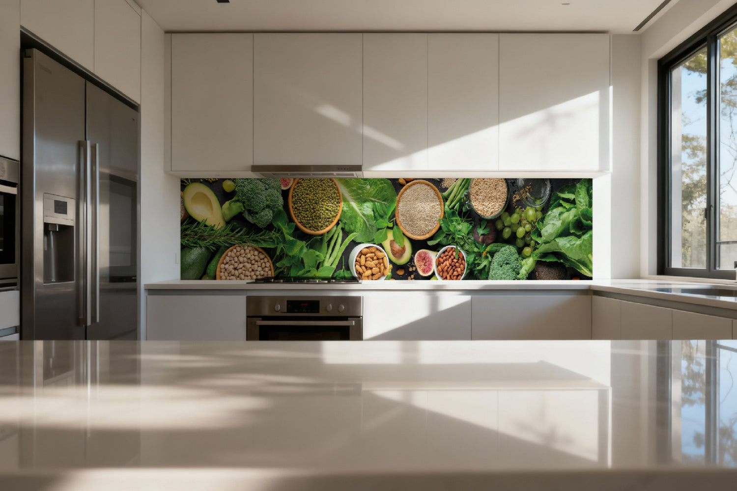 Die glänzende Variante überzeugt mit intensiver Strahlkraft und einem beeindruckenden Tiefeneffekt. Farben und Motive wirken kräftiger, lebendiger und besonders detailreich. Durch die hochglänzende Oberfläche entsteht ein edler Glanz, der Licht reflektiert und dem Raum zusätzliche Helligkeit sowie ein luxuriöses Ambiente verleiht. Eine glänzende Rückwand eignet sich ideal, wenn Sie einen modernen, repräsentativen Look mit besonderer Ausdrucksstärke erzielen möchten.