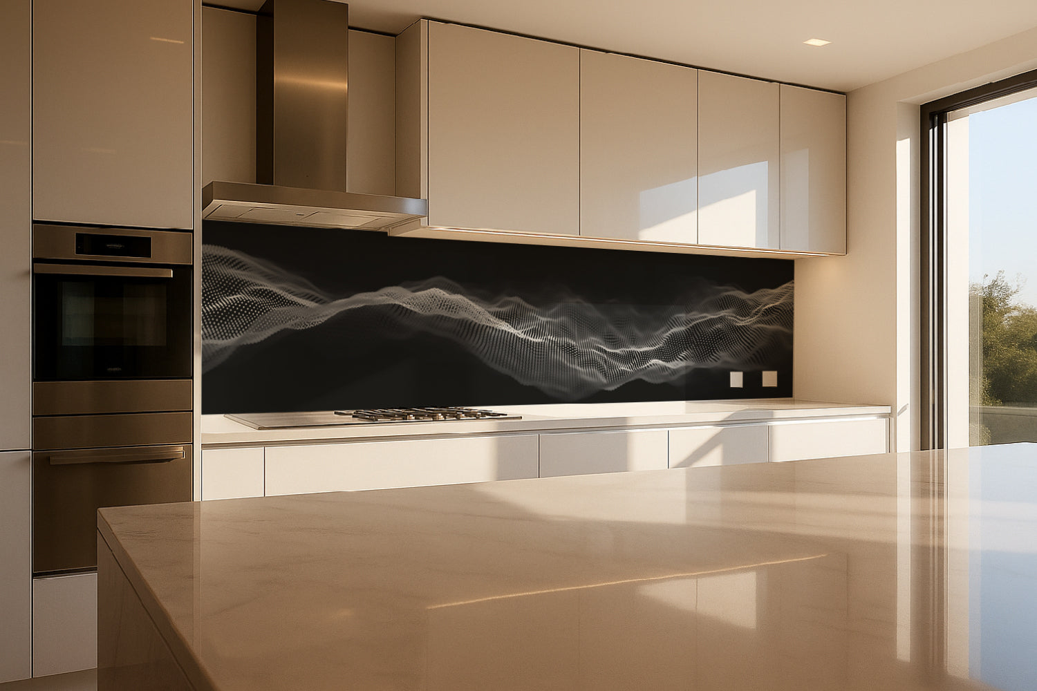 Die glänzende Variante überzeugt mit intensiver Strahlkraft und einem beeindruckenden Tiefeneffekt. Farben und Motive wirken kräftiger, lebendiger und besonders detailreich. Durch die hochglänzende Oberfläche entsteht ein edler Glanz, der Licht reflektiert und dem Raum zusätzliche Helligkeit sowie ein luxuriöses Ambiente verleiht. Eine glänzende Rückwand eignet sich ideal, wenn Sie einen modernen, repräsentativen Look mit besonderer Ausdrucksstärke erzielen möchten.