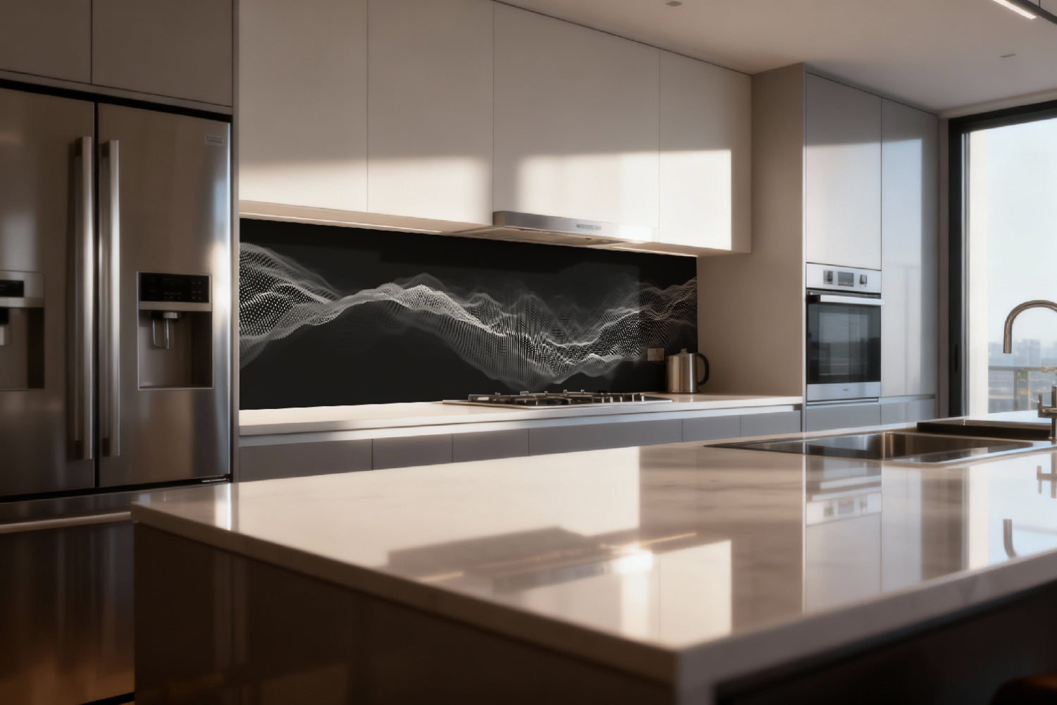 Küchenrückwand Abstrakte Wellen in Schwarz-Weiß