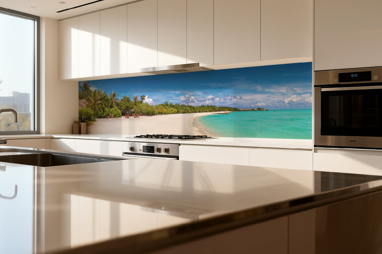 Küchenrückwand Traumstrand mit Palmen