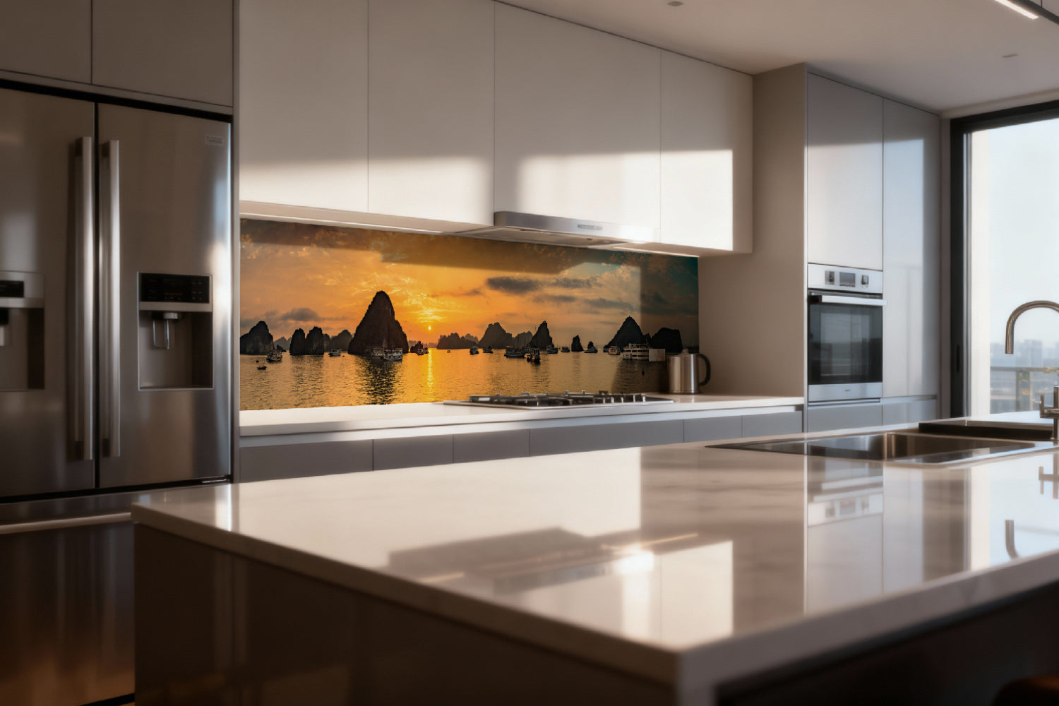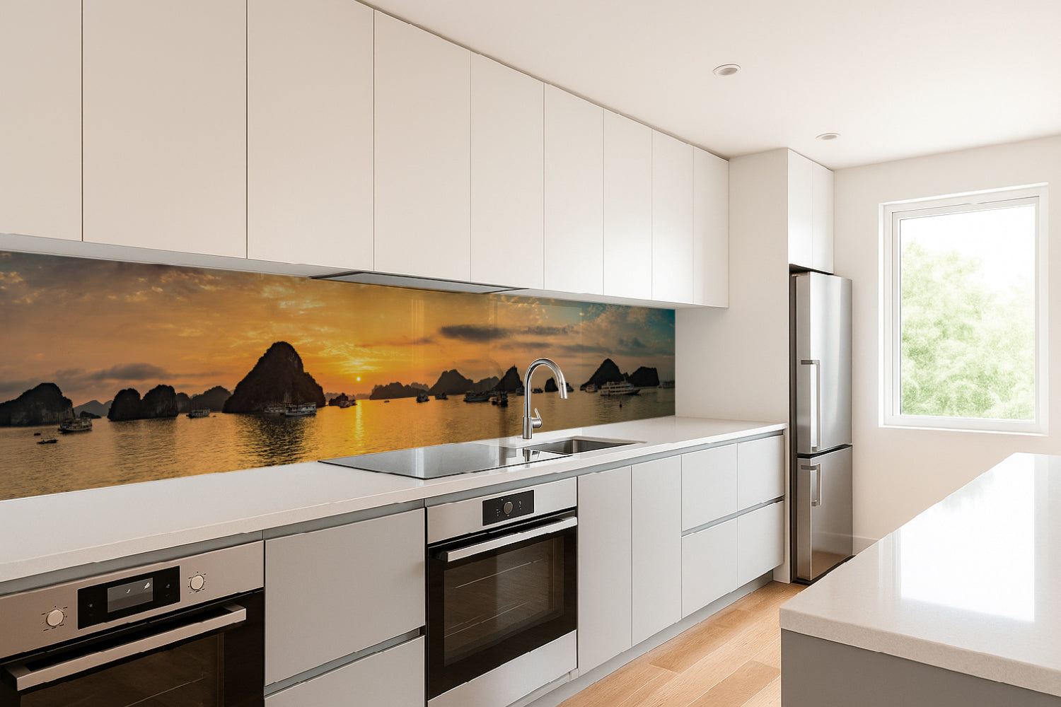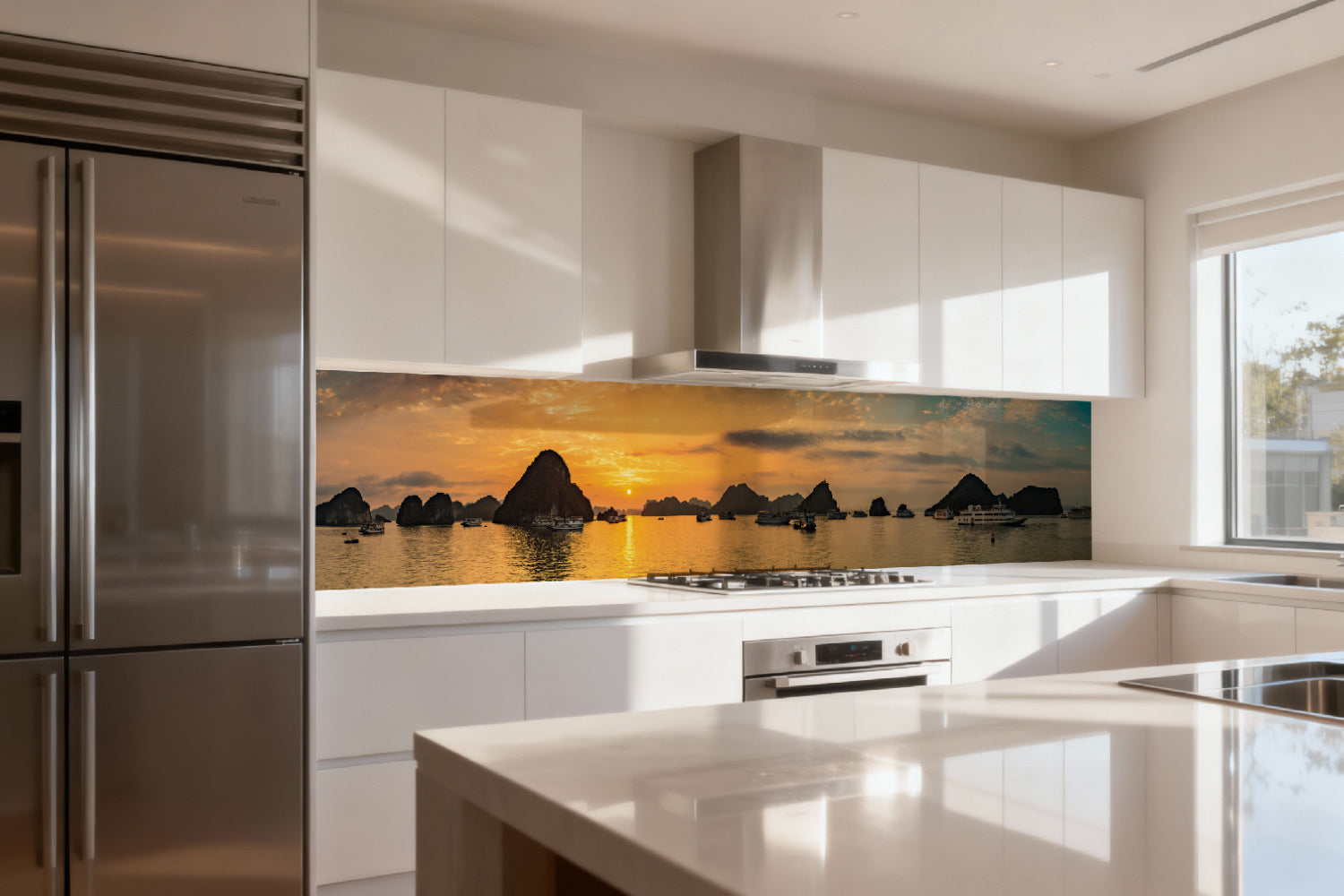 Die glänzende Variante überzeugt mit intensiver Strahlkraft und einem beeindruckenden Tiefeneffekt. Farben und Motive wirken kräftiger, lebendiger und besonders detailreich. Durch die hochglänzende Oberfläche entsteht ein edler Glanz, der Licht reflektiert und dem Raum zusätzliche Helligkeit sowie ein luxuriöses Ambiente verleiht. Eine glänzende Rückwand eignet sich ideal, wenn Sie einen modernen, repräsentativen Look mit besonderer Ausdrucksstärke erzielen möchten.