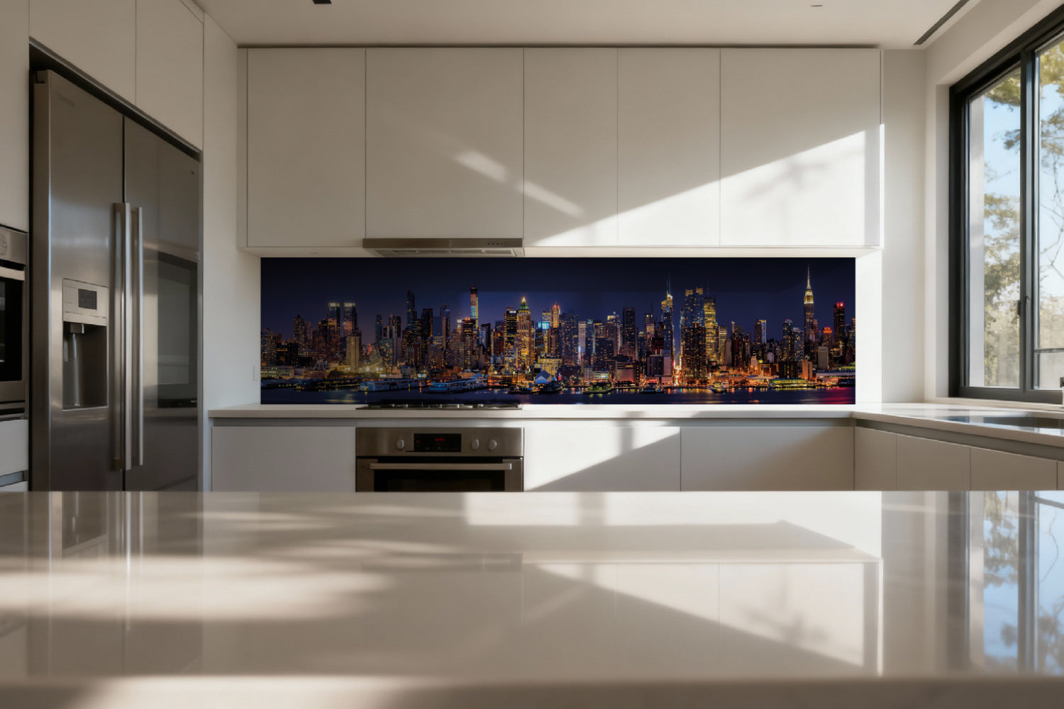 Die glänzende Variante überzeugt mit intensiver Strahlkraft und einem beeindruckenden Tiefeneffekt. Farben und Motive wirken kräftiger, lebendiger und besonders detailreich. Durch die hochglänzende Oberfläche entsteht ein edler Glanz, der Licht reflektiert und dem Raum zusätzliche Helligkeit sowie ein luxuriöses Ambiente verleiht. Eine glänzende Rückwand eignet sich ideal, wenn Sie einen modernen, repräsentativen Look mit besonderer Ausdrucksstärke erzielen möchten.