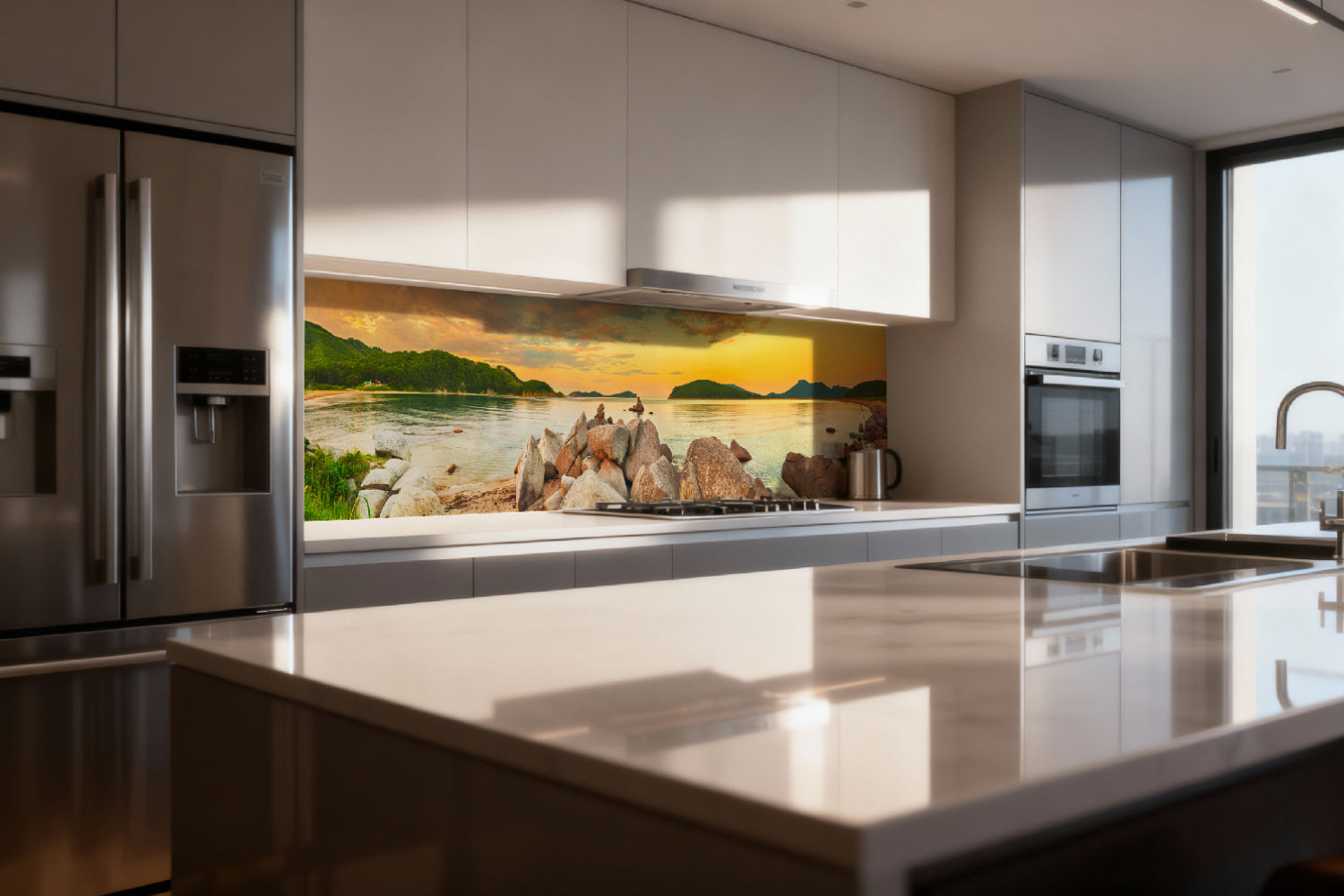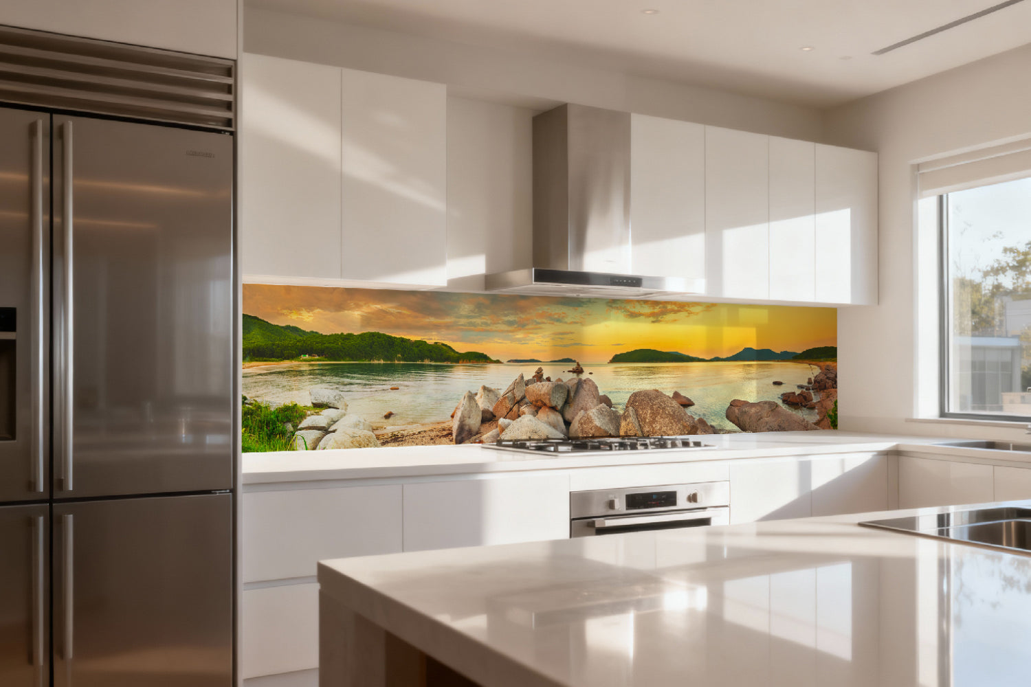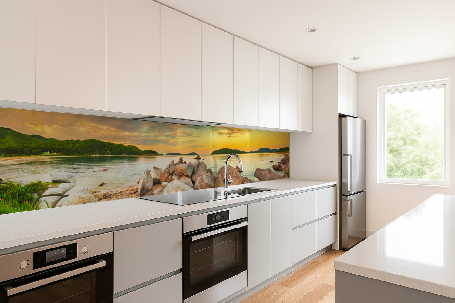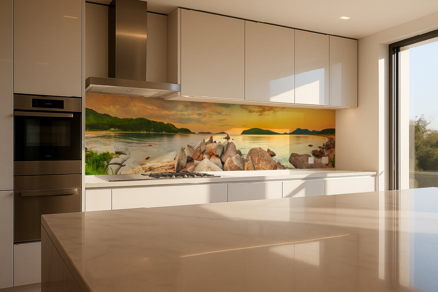 Die glänzende Variante überzeugt mit intensiver Strahlkraft und einem beeindruckenden Tiefeneffekt. Farben und Motive wirken kräftiger, lebendiger und besonders detailreich. Durch die hochglänzende Oberfläche entsteht ein edler Glanz, der Licht reflektiert und dem Raum zusätzliche Helligkeit sowie ein luxuriöses Ambiente verleiht. Eine glänzende Rückwand eignet sich ideal, wenn Sie einen modernen, repräsentativen Look mit besonderer Ausdrucksstärke erzielen möchten.