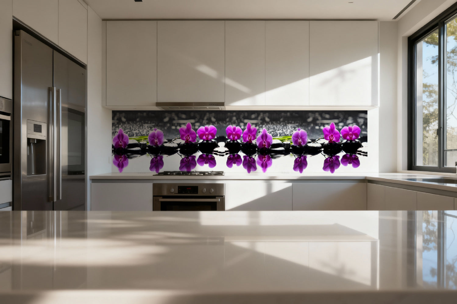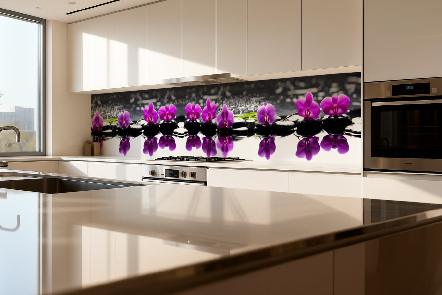 Die glänzende Variante überzeugt mit intensiver Strahlkraft und einem beeindruckenden Tiefeneffekt. Farben und Motive wirken kräftiger, lebendiger und besonders detailreich. Durch die hochglänzende Oberfläche entsteht ein edler Glanz, der Licht reflektiert und dem Raum zusätzliche Helligkeit sowie ein luxuriöses Ambiente verleiht. Eine glänzende Rückwand eignet sich ideal, wenn Sie einen modernen, repräsentativen Look mit besonderer Ausdrucksstärke erzielen möchten.