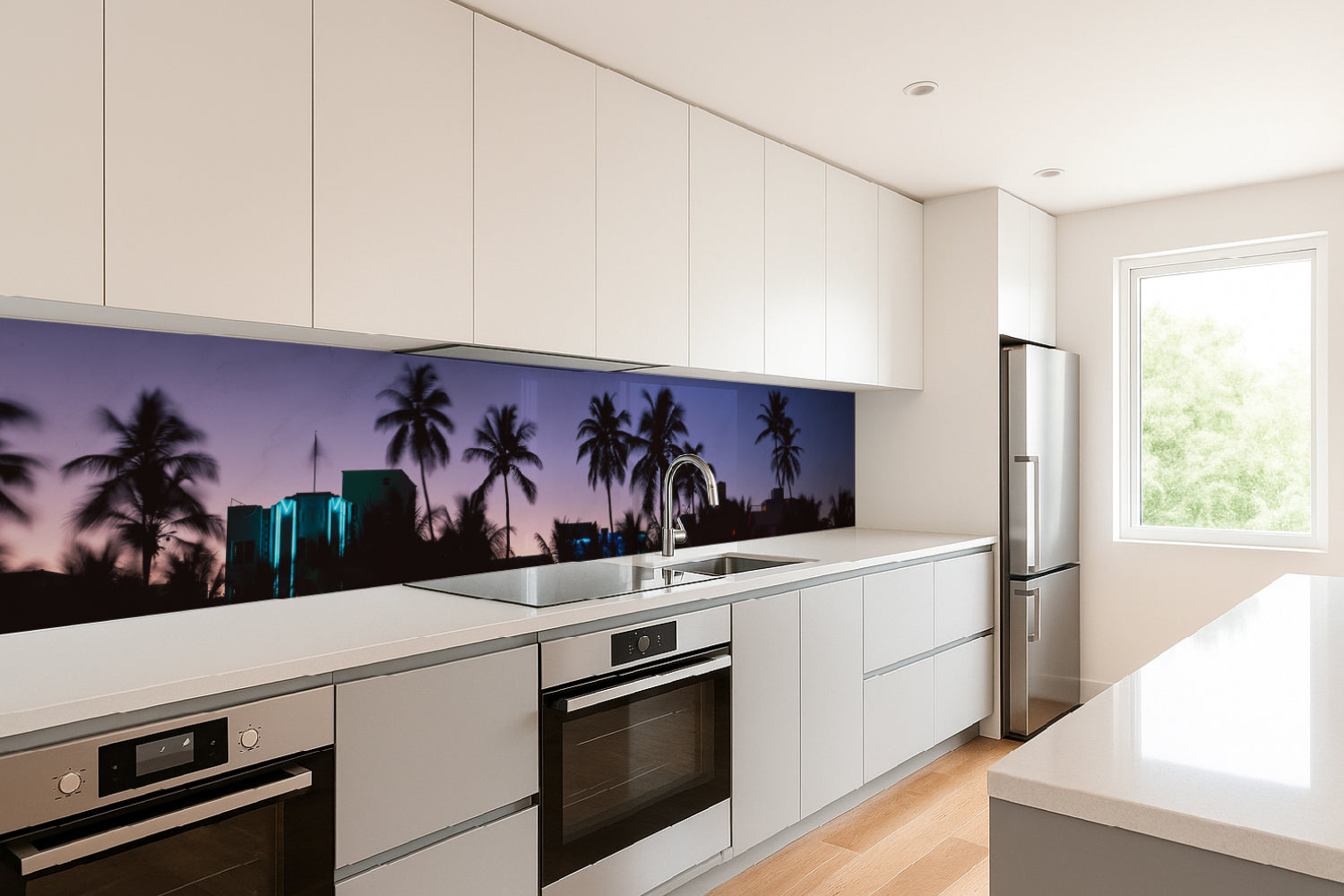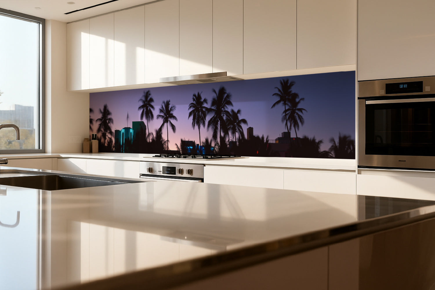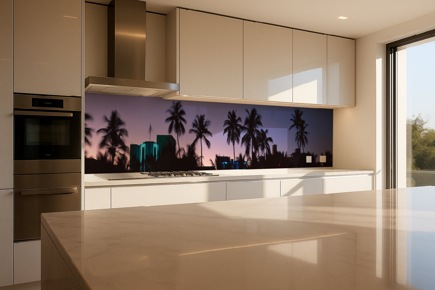Küchenrückwand Palmen bei Sonnenuntergang