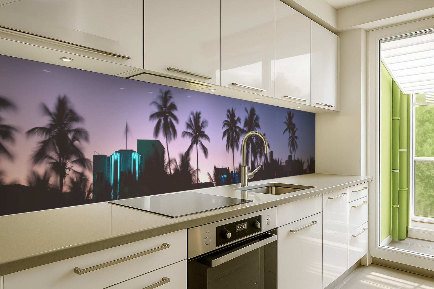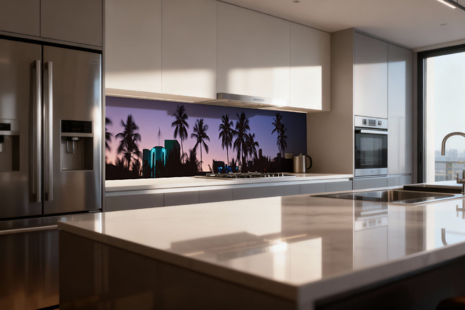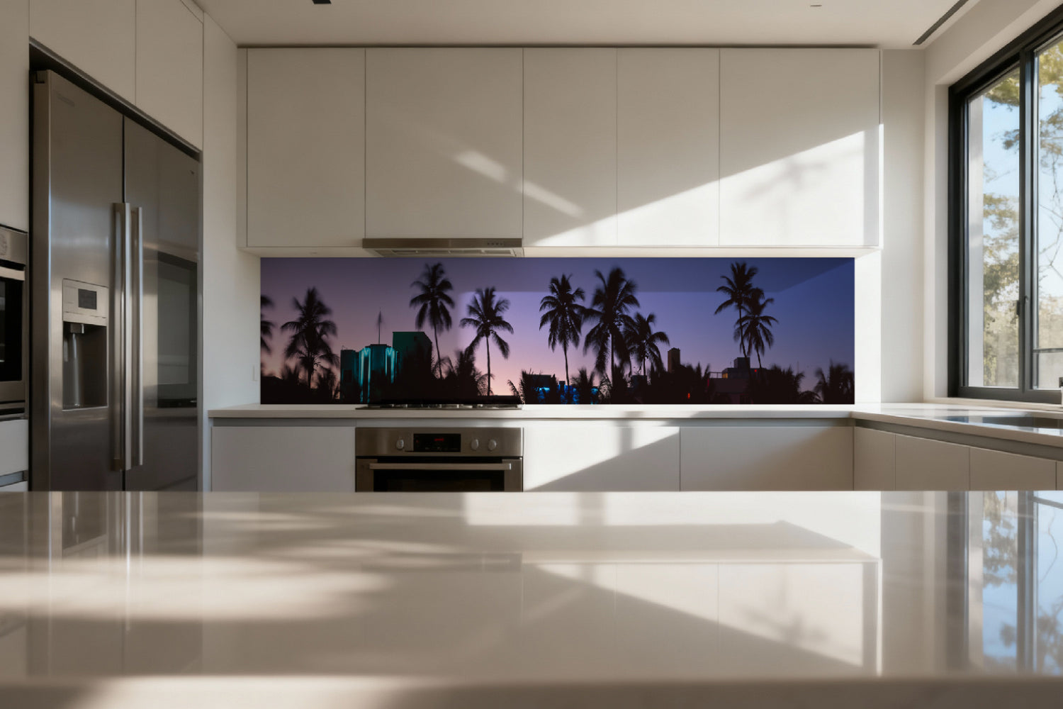 Küchenrückwand Palmen bei Sonnenuntergang