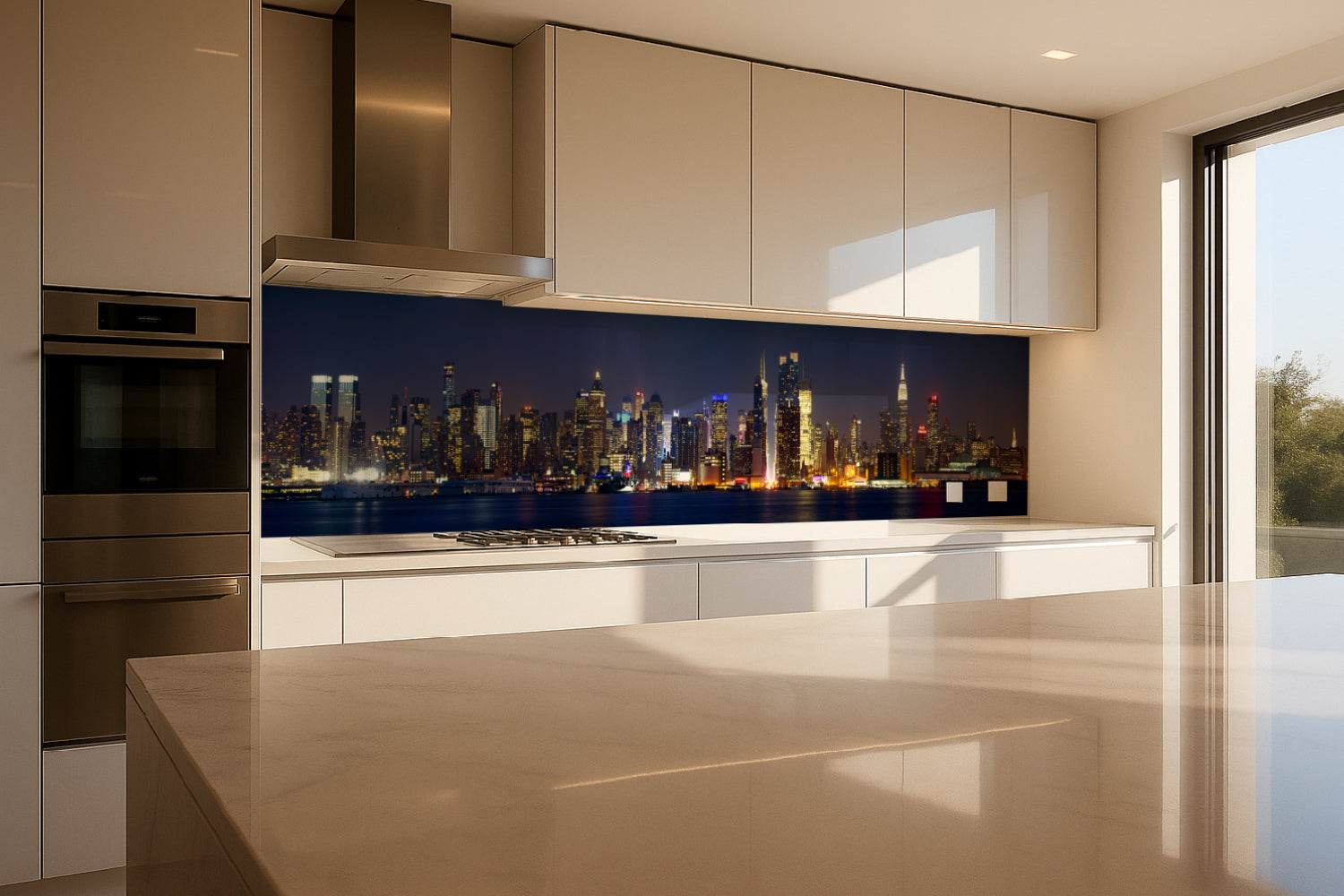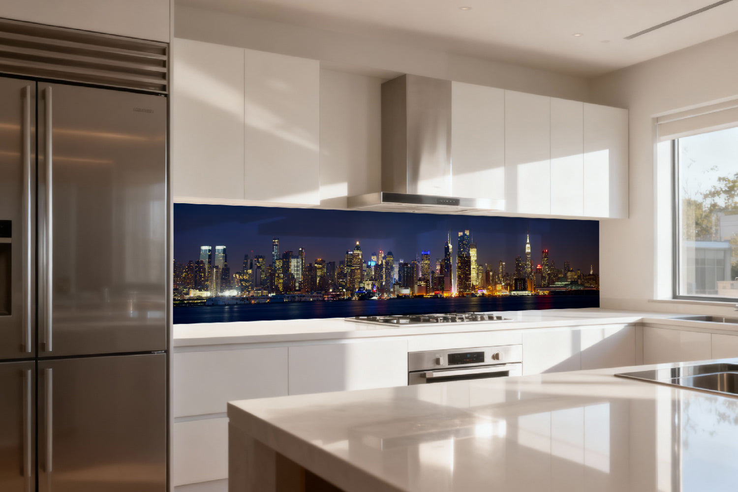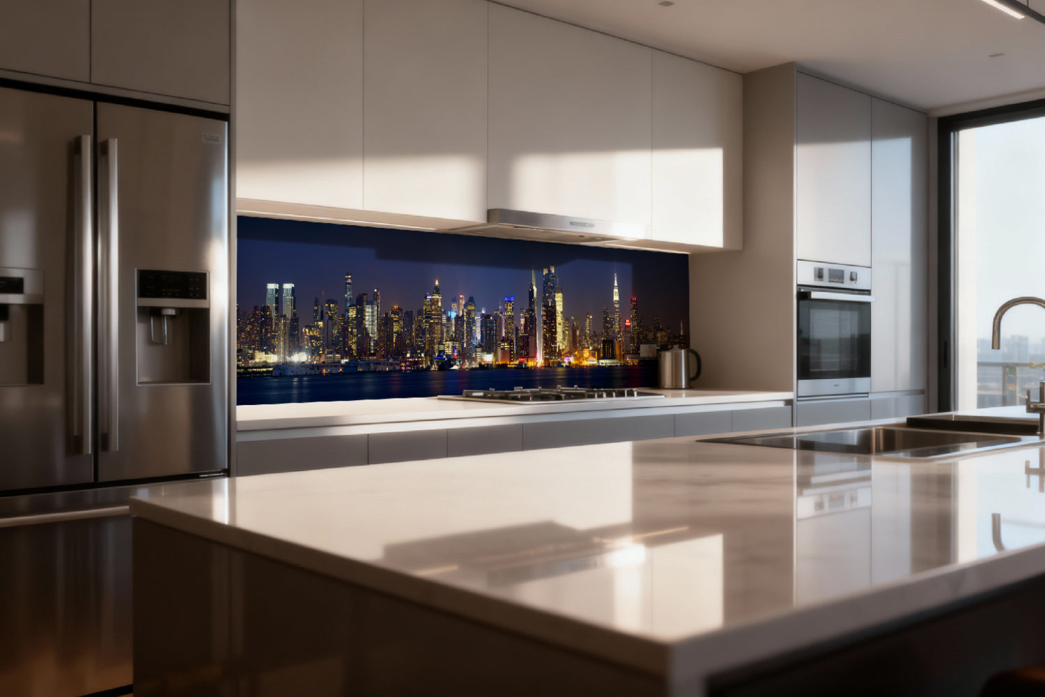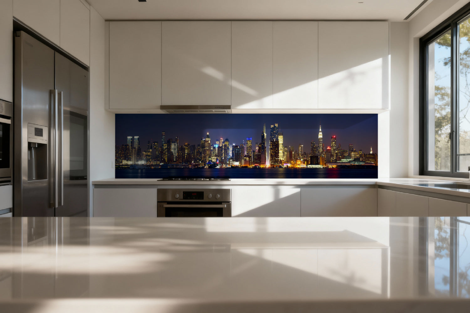 Die glänzende Variante überzeugt mit intensiver Strahlkraft und einem beeindruckenden Tiefeneffekt. Farben und Motive wirken kräftiger, lebendiger und besonders detailreich. Durch die hochglänzende Oberfläche entsteht ein edler Glanz, der Licht reflektiert und dem Raum zusätzliche Helligkeit sowie ein luxuriöses Ambiente verleiht. Eine glänzende Rückwand eignet sich ideal, wenn Sie einen modernen, repräsentativen Look mit besonderer Ausdrucksstärke erzielen möchten.