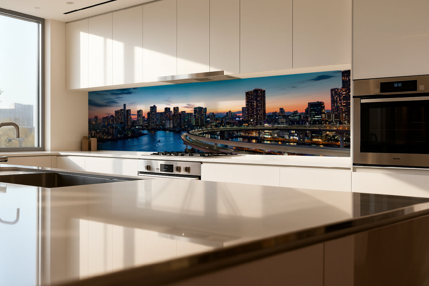 Die glänzende Variante überzeugt mit intensiver Strahlkraft und einem beeindruckenden Tiefeneffekt. Farben und Motive wirken kräftiger, lebendiger und besonders detailreich. Durch die hochglänzende Oberfläche entsteht ein edler Glanz, der Licht reflektiert und dem Raum zusätzliche Helligkeit sowie ein luxuriöses Ambiente verleiht. Eine glänzende Rückwand eignet sich ideal, wenn Sie einen modernen, repräsentativen Look mit besonderer Ausdrucksstärke erzielen möchten.