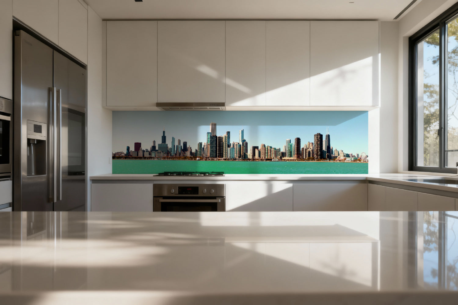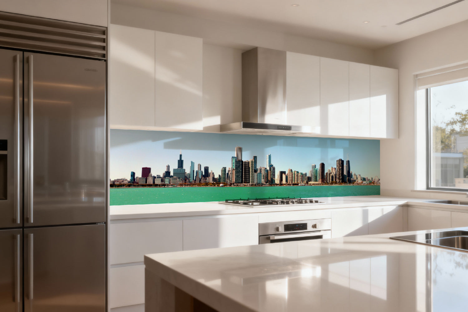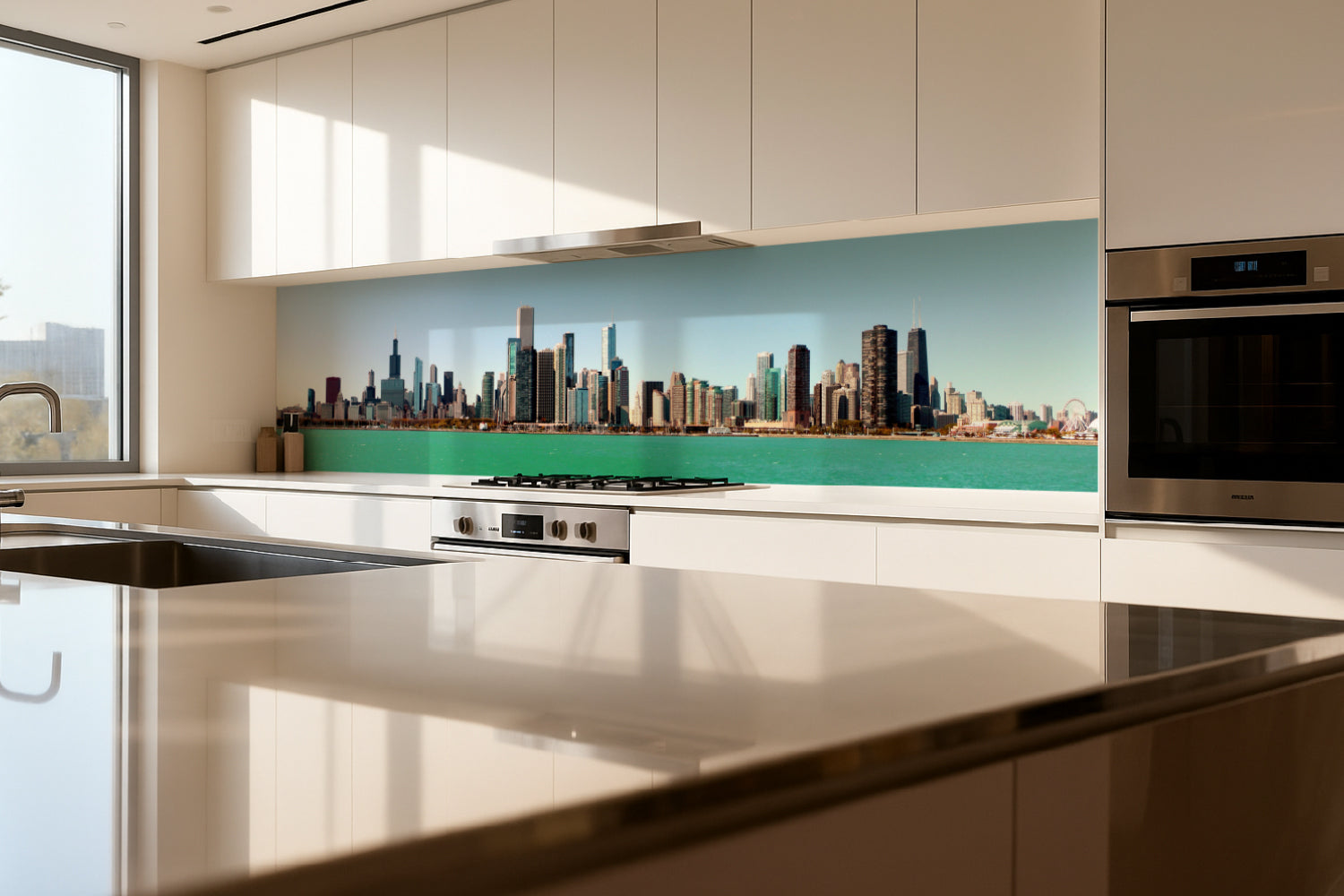 Die glänzende Variante überzeugt mit intensiver Strahlkraft und einem beeindruckenden Tiefeneffekt. Farben und Motive wirken kräftiger, lebendiger und besonders detailreich. Durch die hochglänzende Oberfläche entsteht ein edler Glanz, der Licht reflektiert und dem Raum zusätzliche Helligkeit sowie ein luxuriöses Ambiente verleiht. Eine glänzende Rückwand eignet sich ideal, wenn Sie einen modernen, repräsentativen Look mit besonderer Ausdrucksstärke erzielen möchten.