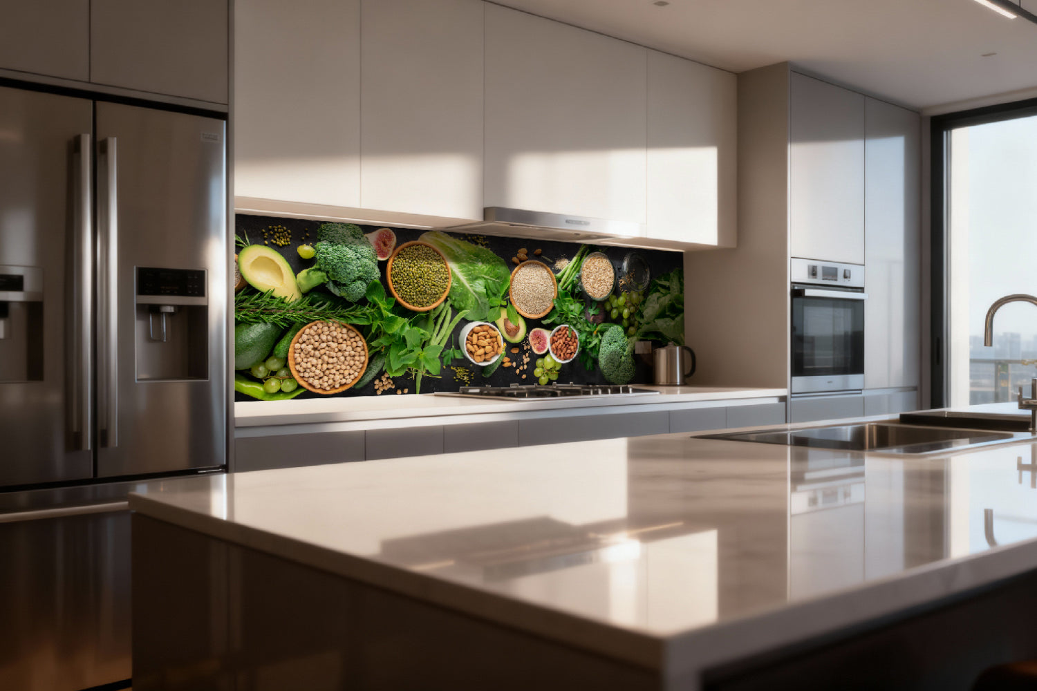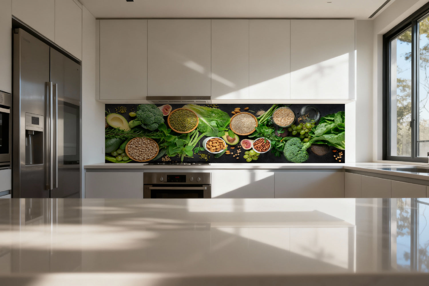 Die glänzende Variante überzeugt mit intensiver Strahlkraft und einem beeindruckenden Tiefeneffekt. Farben und Motive wirken kräftiger, lebendiger und besonders detailreich. Durch die hochglänzende Oberfläche entsteht ein edler Glanz, der Licht reflektiert und dem Raum zusätzliche Helligkeit sowie ein luxuriöses Ambiente verleiht. Eine glänzende Rückwand eignet sich ideal, wenn Sie einen modernen, repräsentativen Look mit besonderer Ausdrucksstärke erzielen möchten.