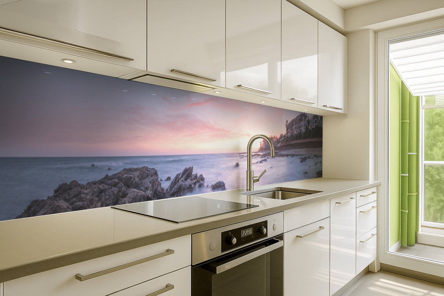 Die glänzende Variante überzeugt mit intensiver Strahlkraft und einem beeindruckenden Tiefeneffekt. Farben und Motive wirken kräftiger, lebendiger und besonders detailreich. Durch die hochglänzende Oberfläche entsteht ein edler Glanz, der Licht reflektiert und dem Raum zusätzliche Helligkeit sowie ein luxuriöses Ambiente verleiht. Eine glänzende Rückwand eignet sich ideal, wenn Sie einen modernen, repräsentativen Look mit besonderer Ausdrucksstärke erzielen möchten.