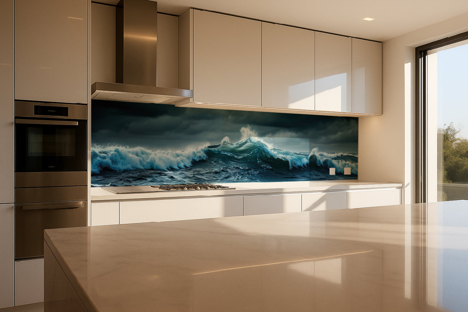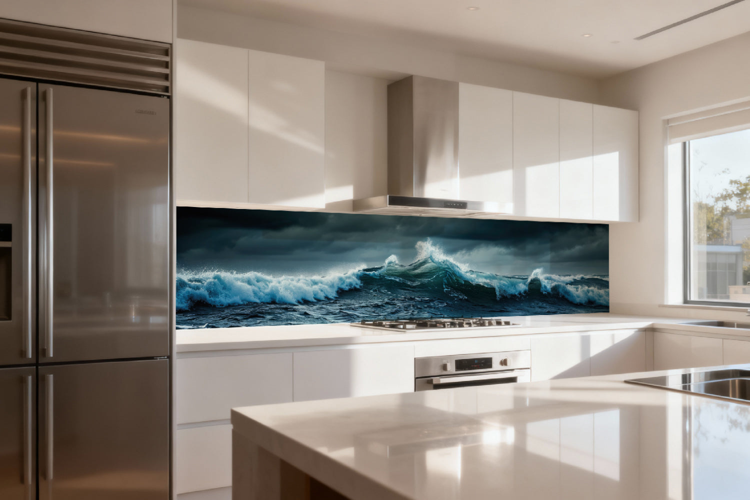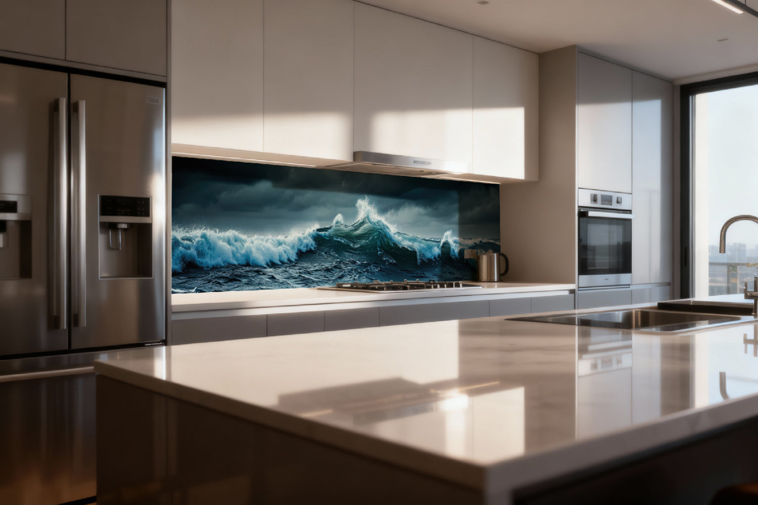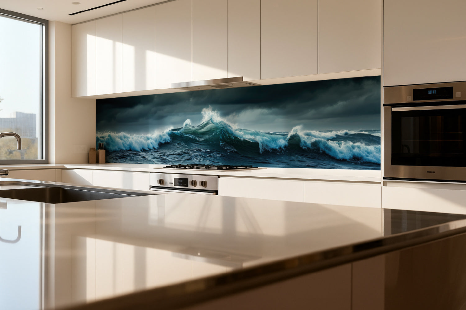 Die glänzende Variante überzeugt mit intensiver Strahlkraft und einem beeindruckenden Tiefeneffekt. Farben und Motive wirken kräftiger, lebendiger und besonders detailreich. Durch die hochglänzende Oberfläche entsteht ein edler Glanz, der Licht reflektiert und dem Raum zusätzliche Helligkeit sowie ein luxuriöses Ambiente verleiht. Eine glänzende Rückwand eignet sich ideal, wenn Sie einen modernen, repräsentativen Look mit besonderer Ausdrucksstärke erzielen möchten.