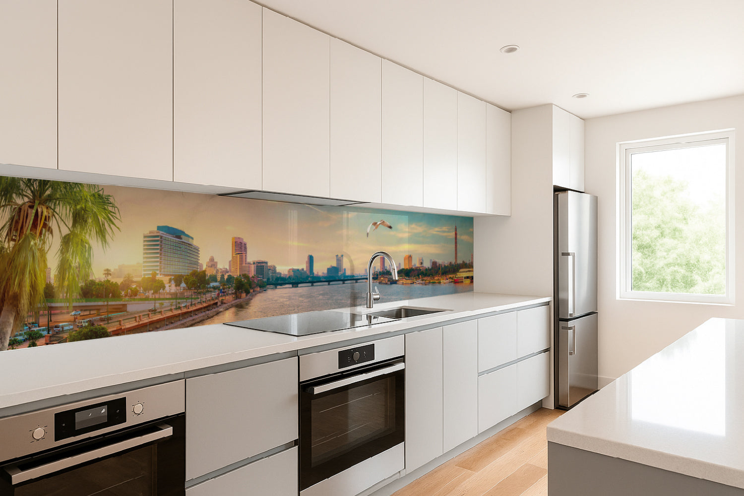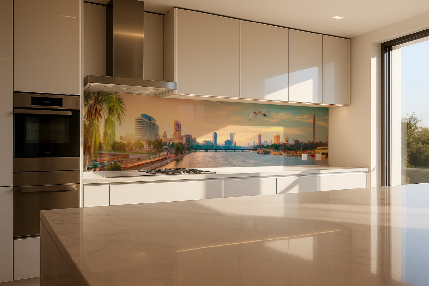 Die glänzende Variante überzeugt mit intensiver Strahlkraft und einem beeindruckenden Tiefeneffekt. Farben und Motive wirken kräftiger, lebendiger und besonders detailreich. Durch die hochglänzende Oberfläche entsteht ein edler Glanz, der Licht reflektiert und dem Raum zusätzliche Helligkeit sowie ein luxuriöses Ambiente verleiht. Eine glänzende Rückwand eignet sich ideal, wenn Sie einen modernen, repräsentativen Look mit besonderer Ausdrucksstärke erzielen möchten.
