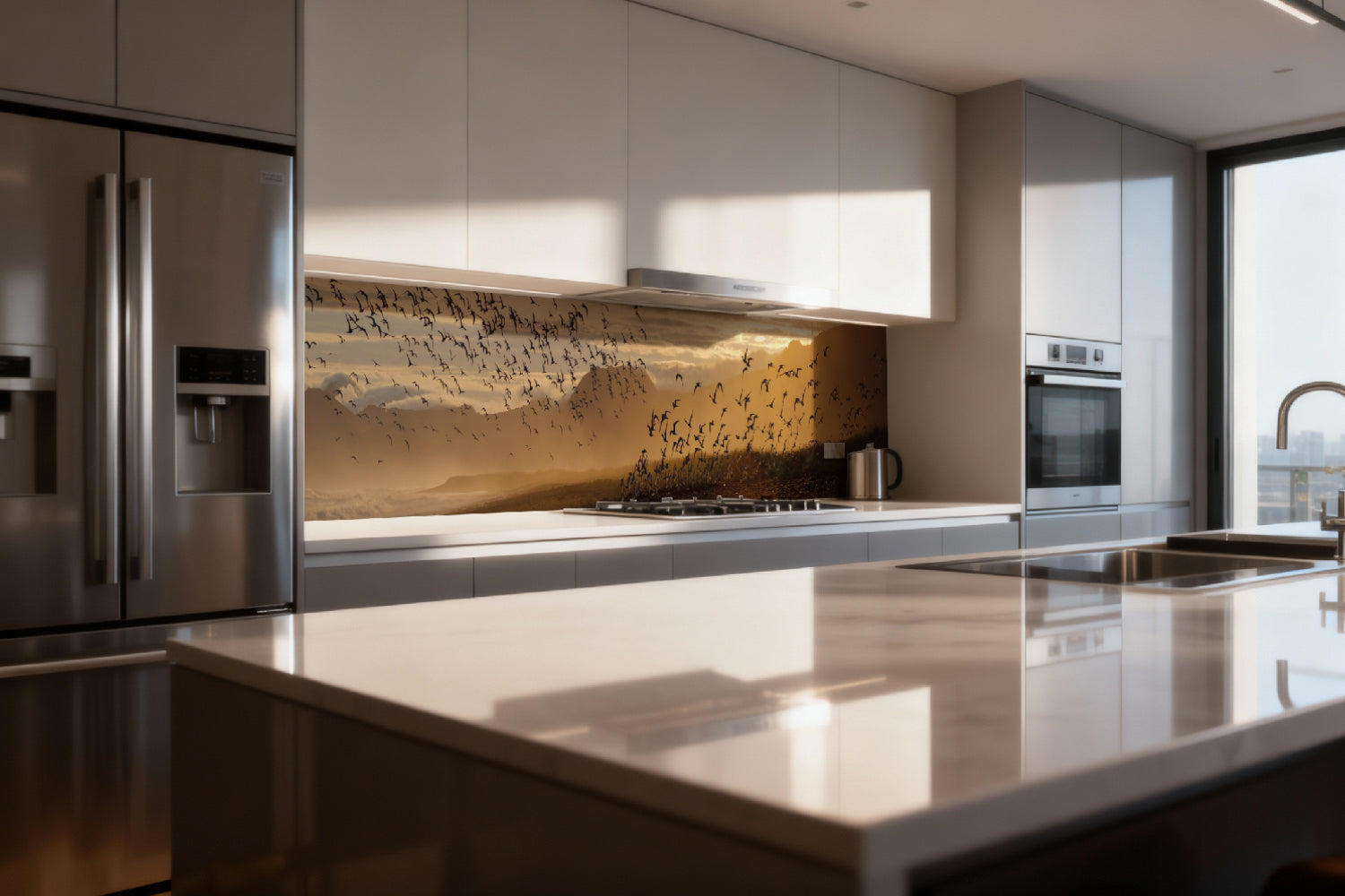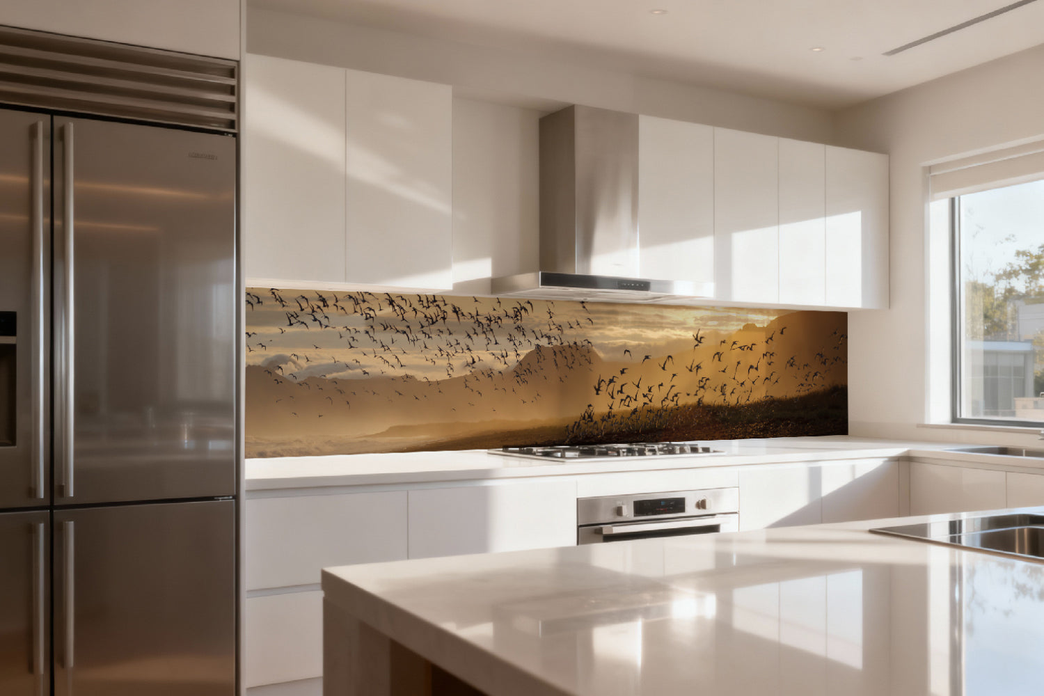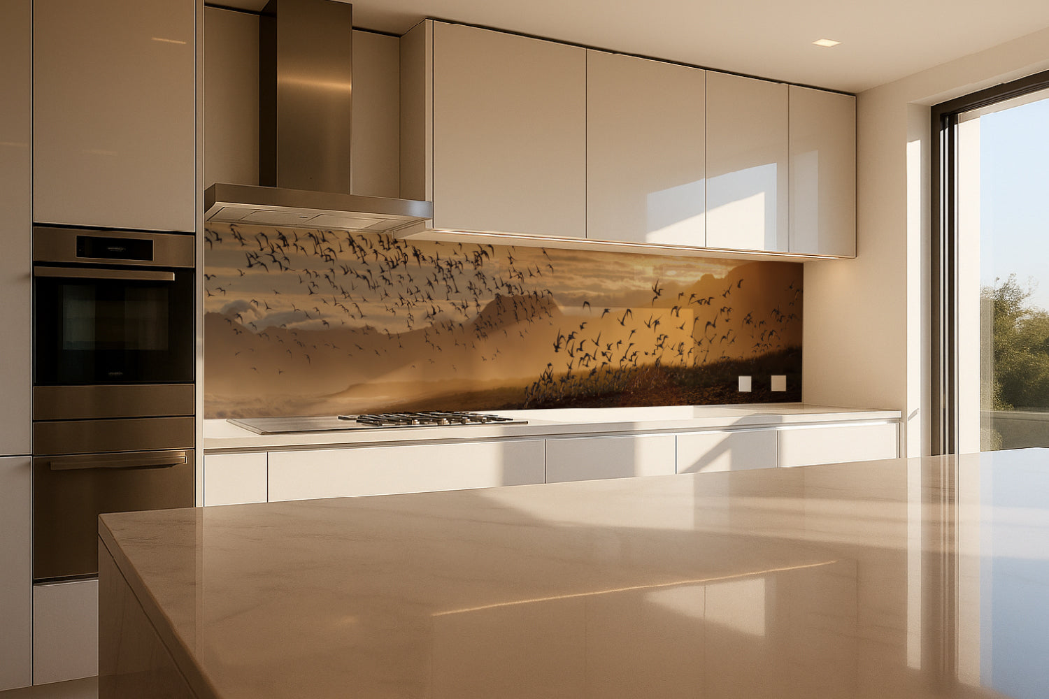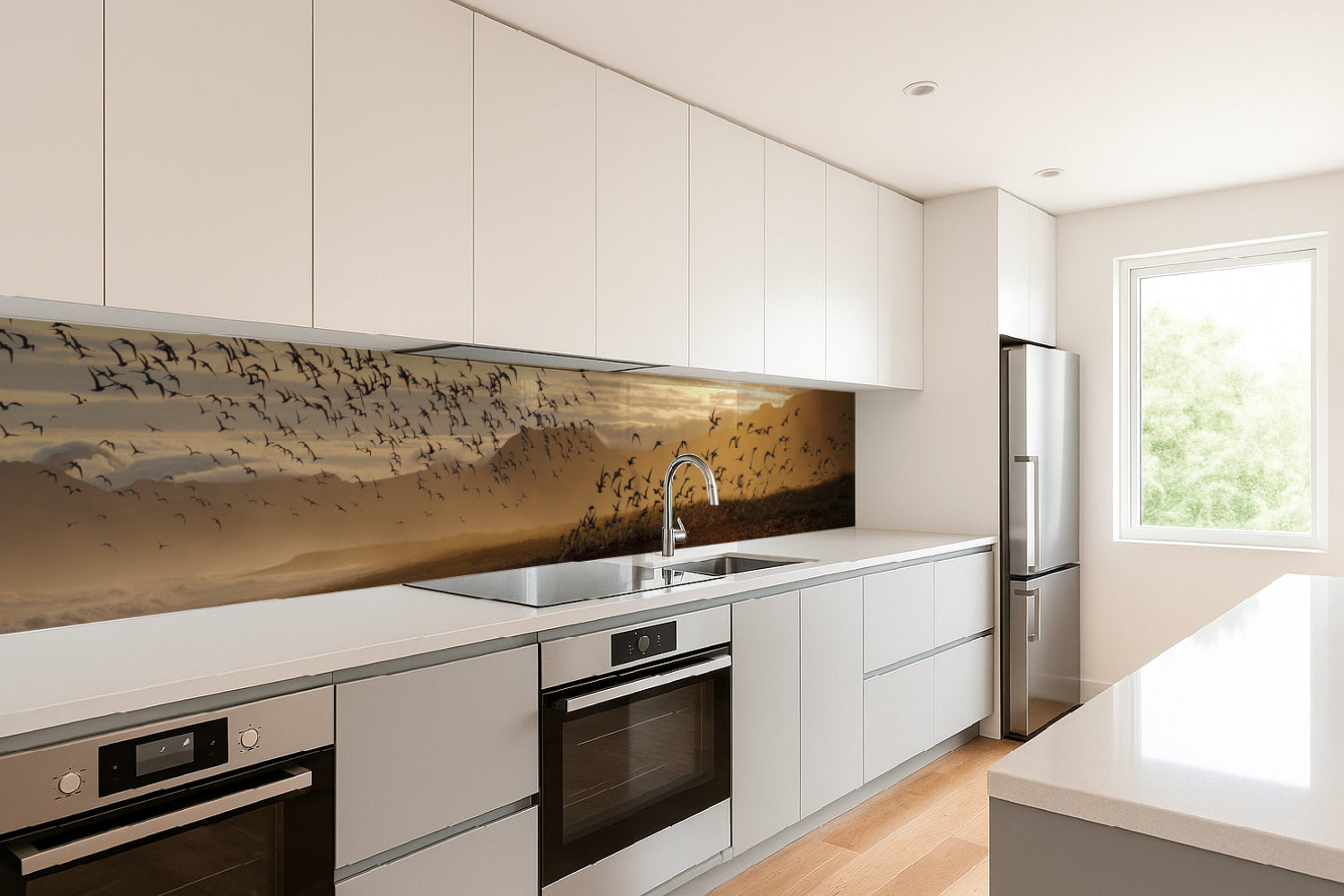 Küchenrückwand Sonnenlicht und Vogelschwarm