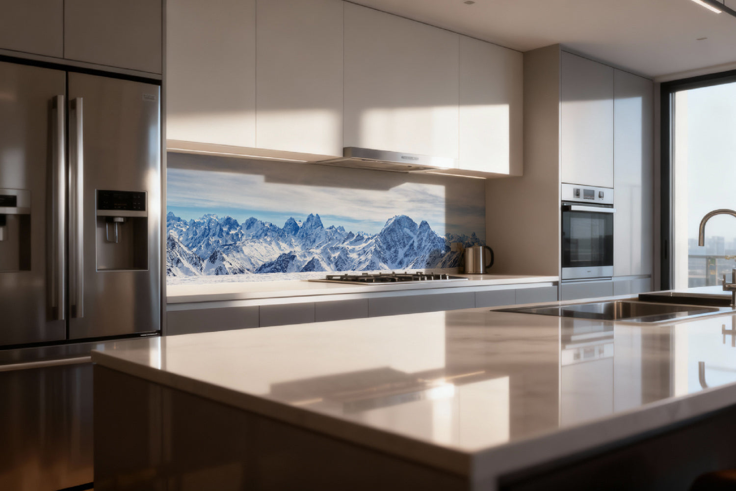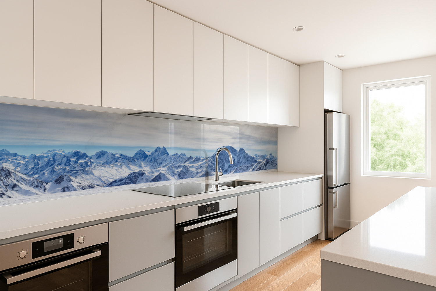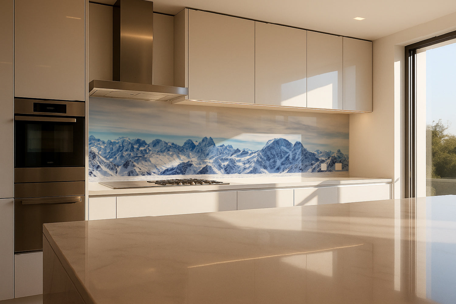 Die glänzende Variante überzeugt mit intensiver Strahlkraft und einem beeindruckenden Tiefeneffekt. Farben und Motive wirken kräftiger, lebendiger und besonders detailreich. Durch die hochglänzende Oberfläche entsteht ein edler Glanz, der Licht reflektiert und dem Raum zusätzliche Helligkeit sowie ein luxuriöses Ambiente verleiht. Eine glänzende Rückwand eignet sich ideal, wenn Sie einen modernen, repräsentativen Look mit besonderer Ausdrucksstärke erzielen möchten.