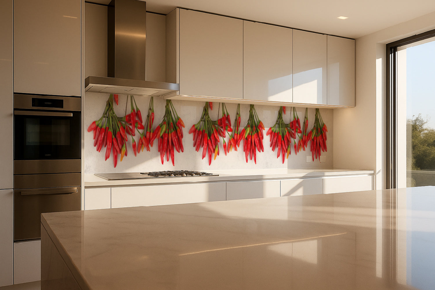 Die glänzende Variante überzeugt mit intensiver Strahlkraft und einem beeindruckenden Tiefeneffekt. Farben und Motive wirken kräftiger, lebendiger und besonders detailreich. Durch die hochglänzende Oberfläche entsteht ein edler Glanz, der Licht reflektiert und dem Raum zusätzliche Helligkeit sowie ein luxuriöses Ambiente verleiht. Eine glänzende Rückwand eignet sich ideal, wenn Sie einen modernen, repräsentativen Look mit besonderer Ausdrucksstärke erzielen möchten.