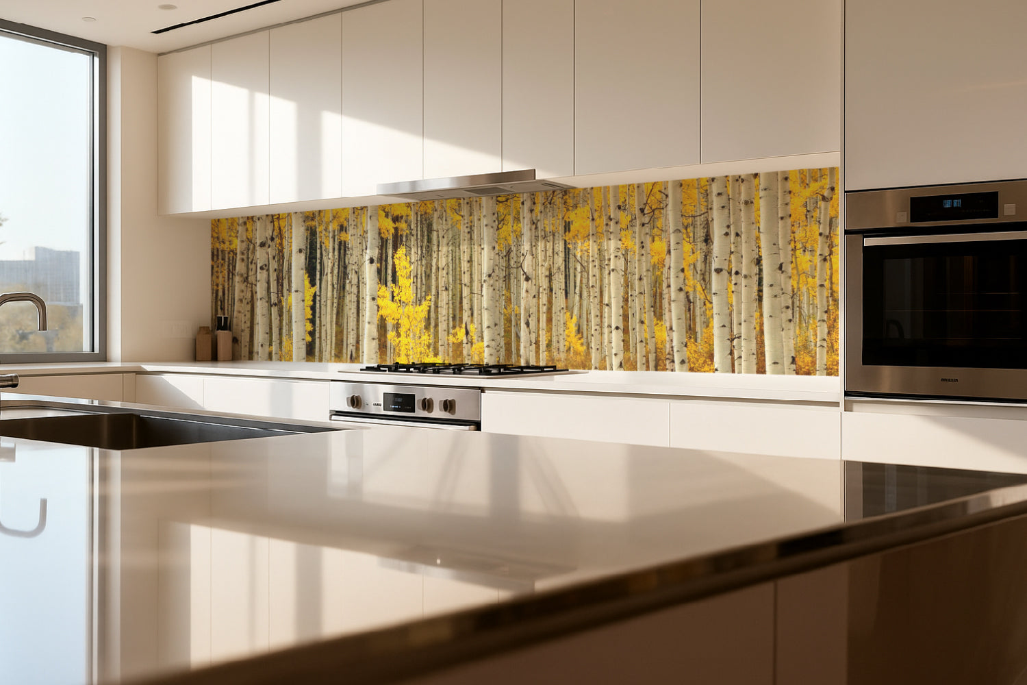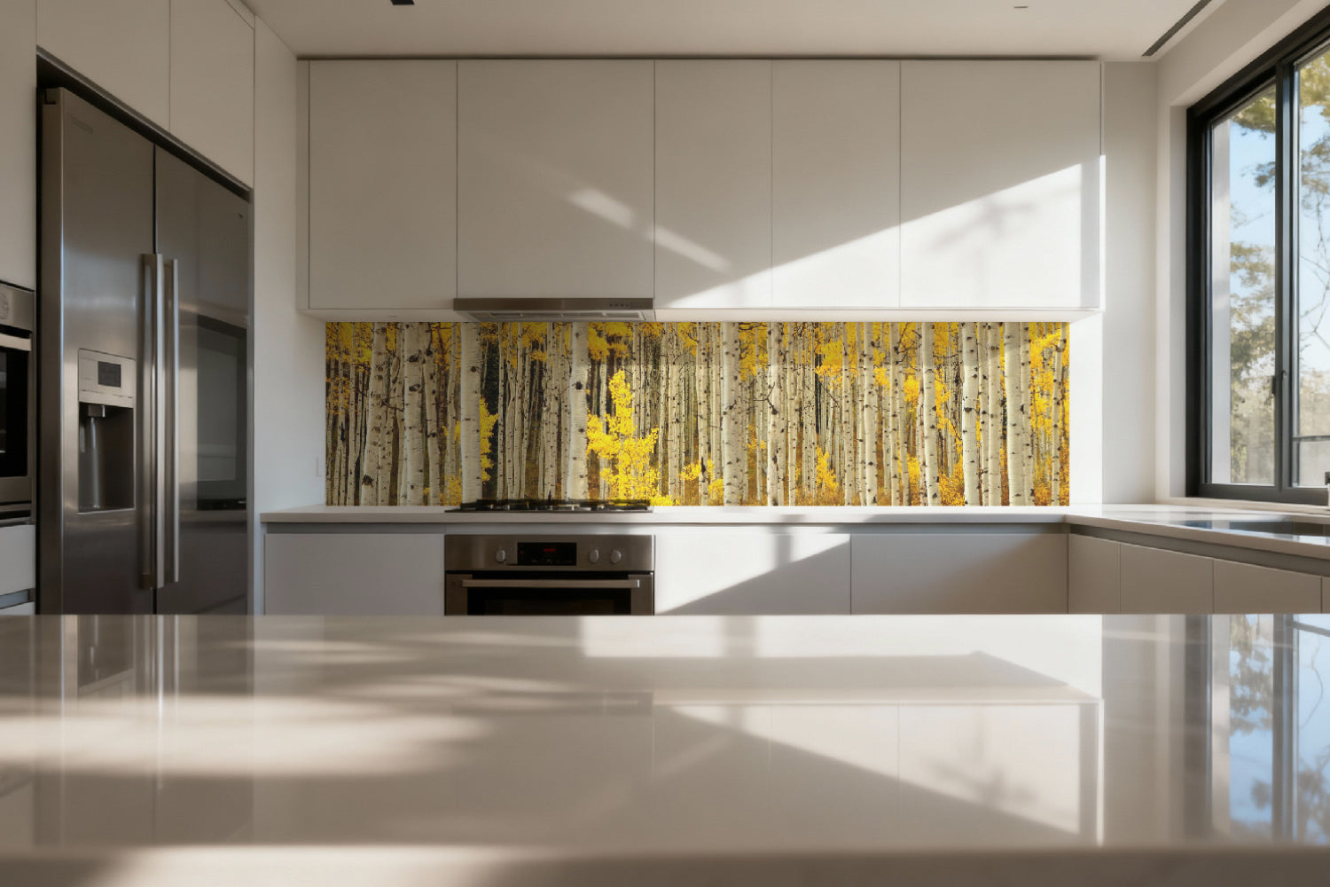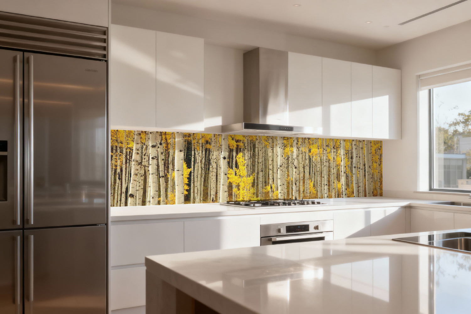 Die glänzende Variante überzeugt mit intensiver Strahlkraft und einem beeindruckenden Tiefeneffekt. Farben und Motive wirken kräftiger, lebendiger und besonders detailreich. Durch die hochglänzende Oberfläche entsteht ein edler Glanz, der Licht reflektiert und dem Raum zusätzliche Helligkeit sowie ein luxuriöses Ambiente verleiht. Eine glänzende Rückwand eignet sich ideal, wenn Sie einen modernen, repräsentativen Look mit besonderer Ausdrucksstärke erzielen möchten.