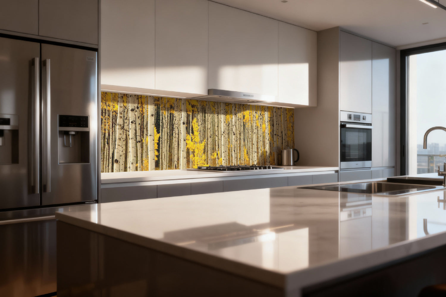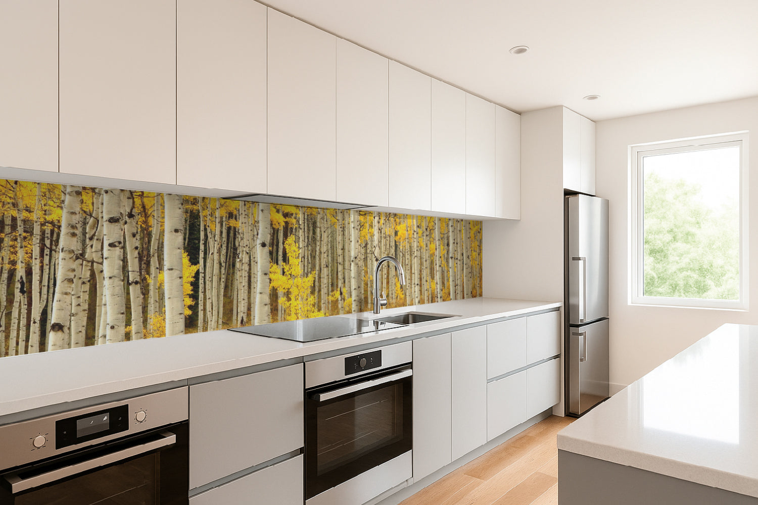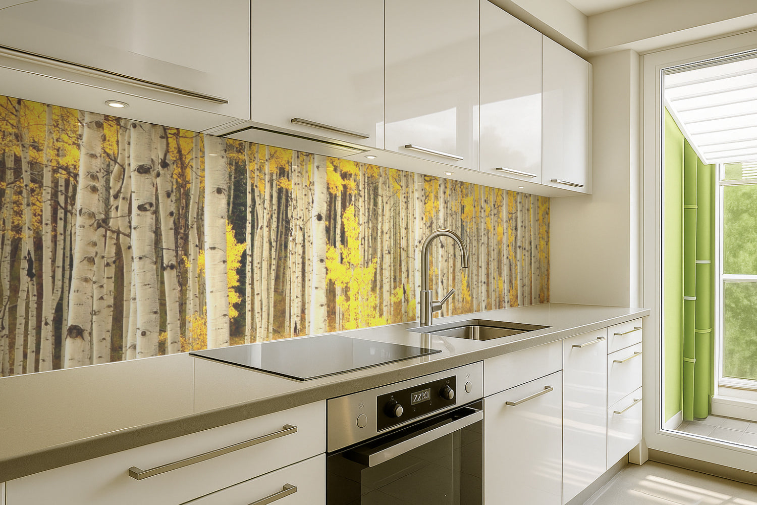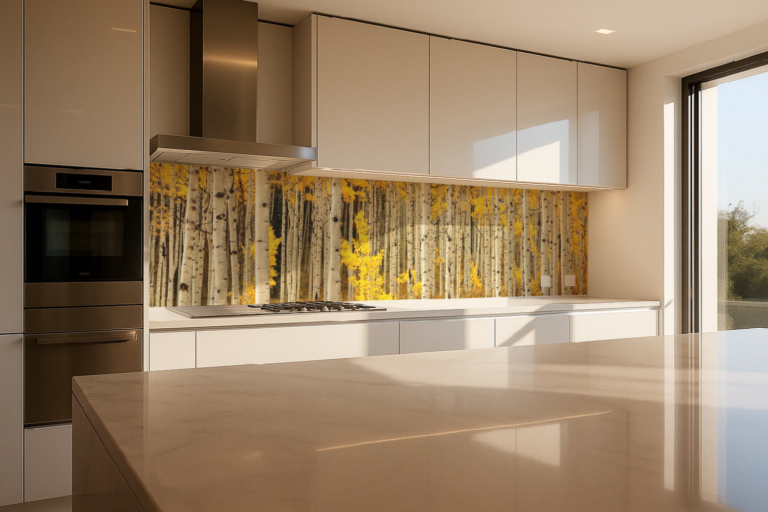 Die glänzende Variante überzeugt mit intensiver Strahlkraft und einem beeindruckenden Tiefeneffekt. Farben und Motive wirken kräftiger, lebendiger und besonders detailreich. Durch die hochglänzende Oberfläche entsteht ein edler Glanz, der Licht reflektiert und dem Raum zusätzliche Helligkeit sowie ein luxuriöses Ambiente verleiht. Eine glänzende Rückwand eignet sich ideal, wenn Sie einen modernen, repräsentativen Look mit besonderer Ausdrucksstärke erzielen möchten.