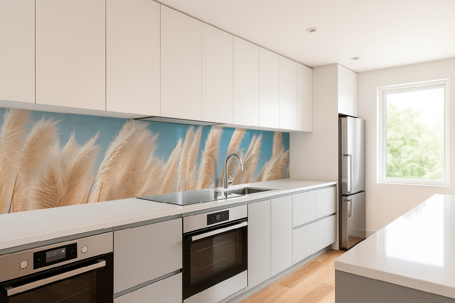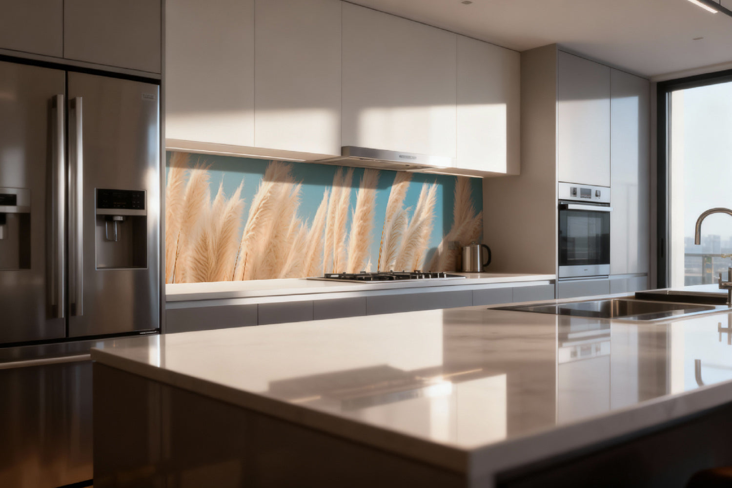 Die glänzende Variante überzeugt mit intensiver Strahlkraft und einem beeindruckenden Tiefeneffekt. Farben und Motive wirken kräftiger, lebendiger und besonders detailreich. Durch die hochglänzende Oberfläche entsteht ein edler Glanz, der Licht reflektiert und dem Raum zusätzliche Helligkeit sowie ein luxuriöses Ambiente verleiht. Eine glänzende Rückwand eignet sich ideal, wenn Sie einen modernen, repräsentativen Look mit besonderer Ausdrucksstärke erzielen möchten.