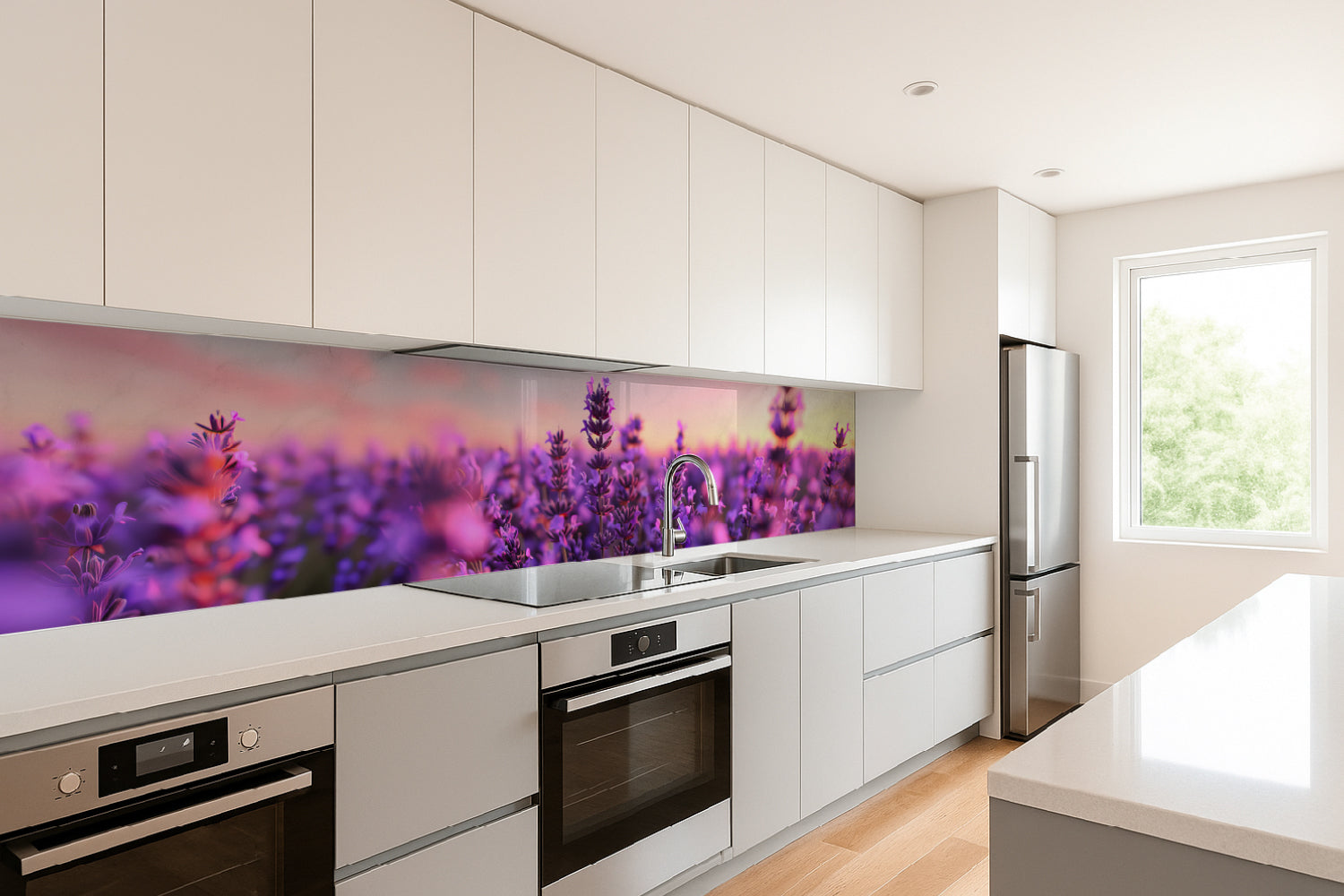 Küchenrückwand Lavendel im Sonnenuntergang