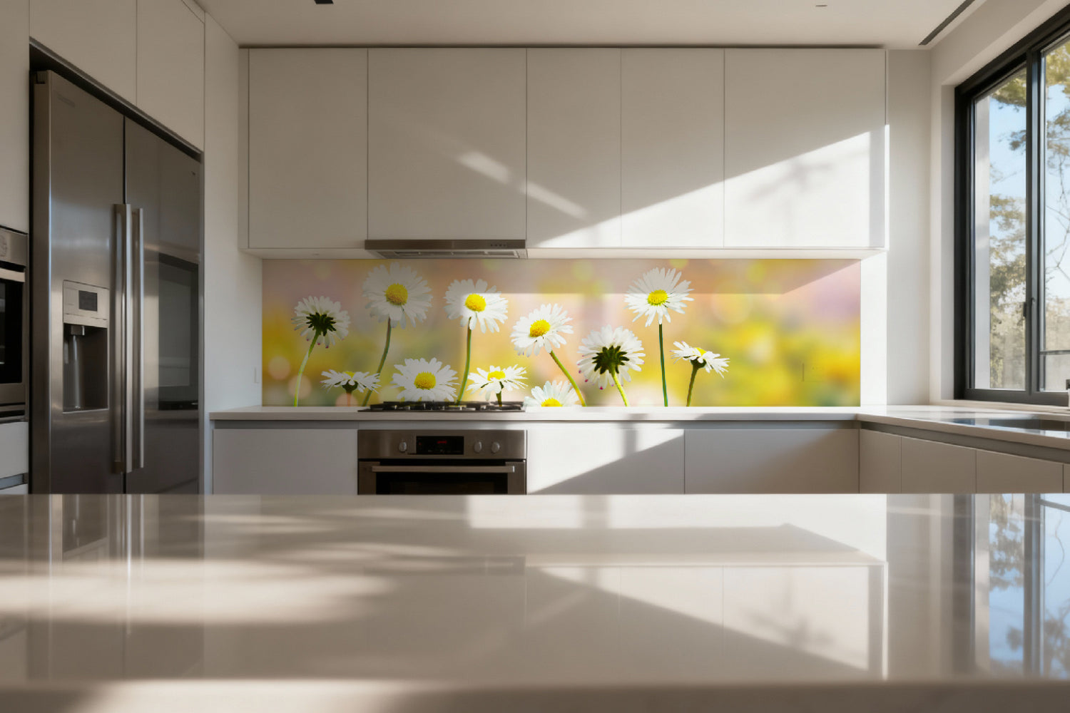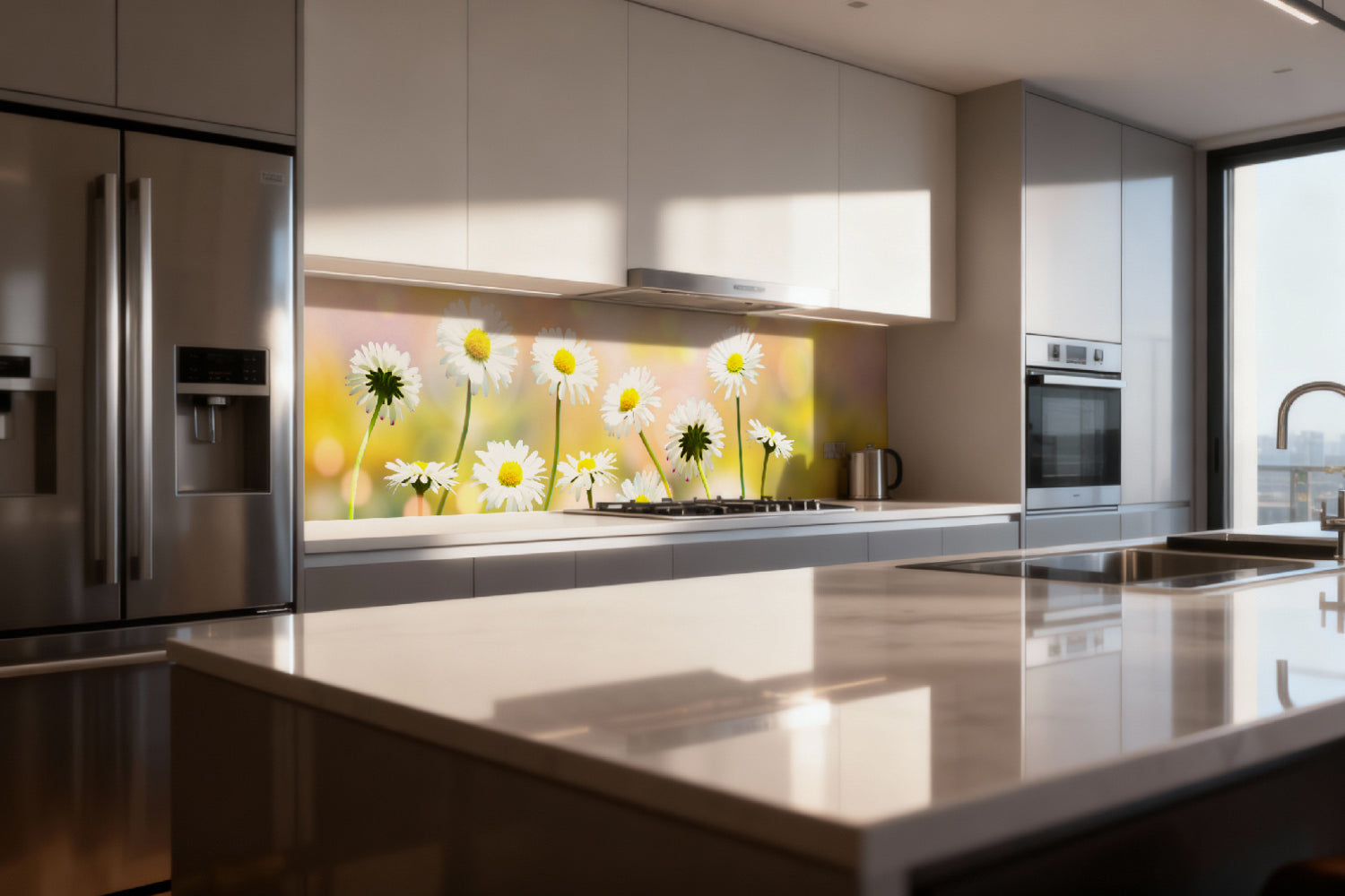 Die glänzende Variante überzeugt mit intensiver Strahlkraft und einem beeindruckenden Tiefeneffekt. Farben und Motive wirken kräftiger, lebendiger und besonders detailreich. Durch die hochglänzende Oberfläche entsteht ein edler Glanz, der Licht reflektiert und dem Raum zusätzliche Helligkeit sowie ein luxuriöses Ambiente verleiht. Eine glänzende Rückwand eignet sich ideal, wenn Sie einen modernen, repräsentativen Look mit besonderer Ausdrucksstärke erzielen möchten.
