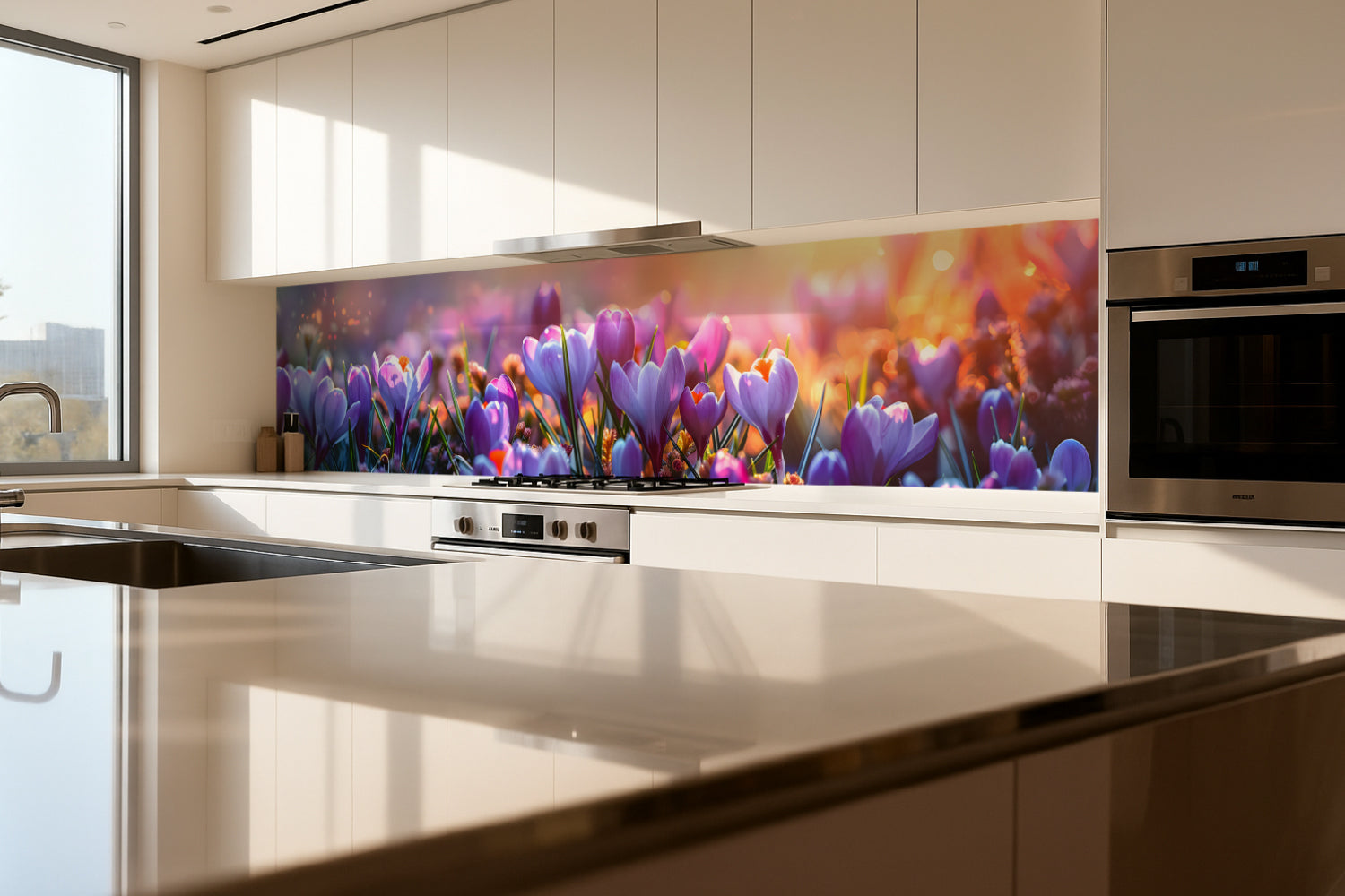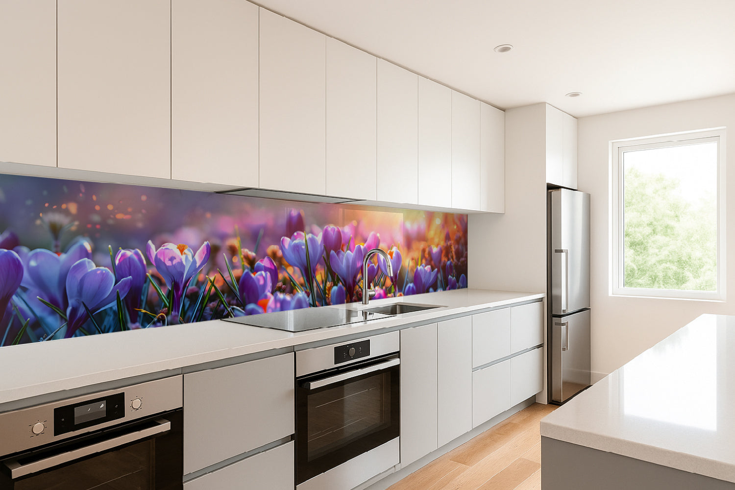 Küchenrückwand Lila Blumen im Sonnenlicht
