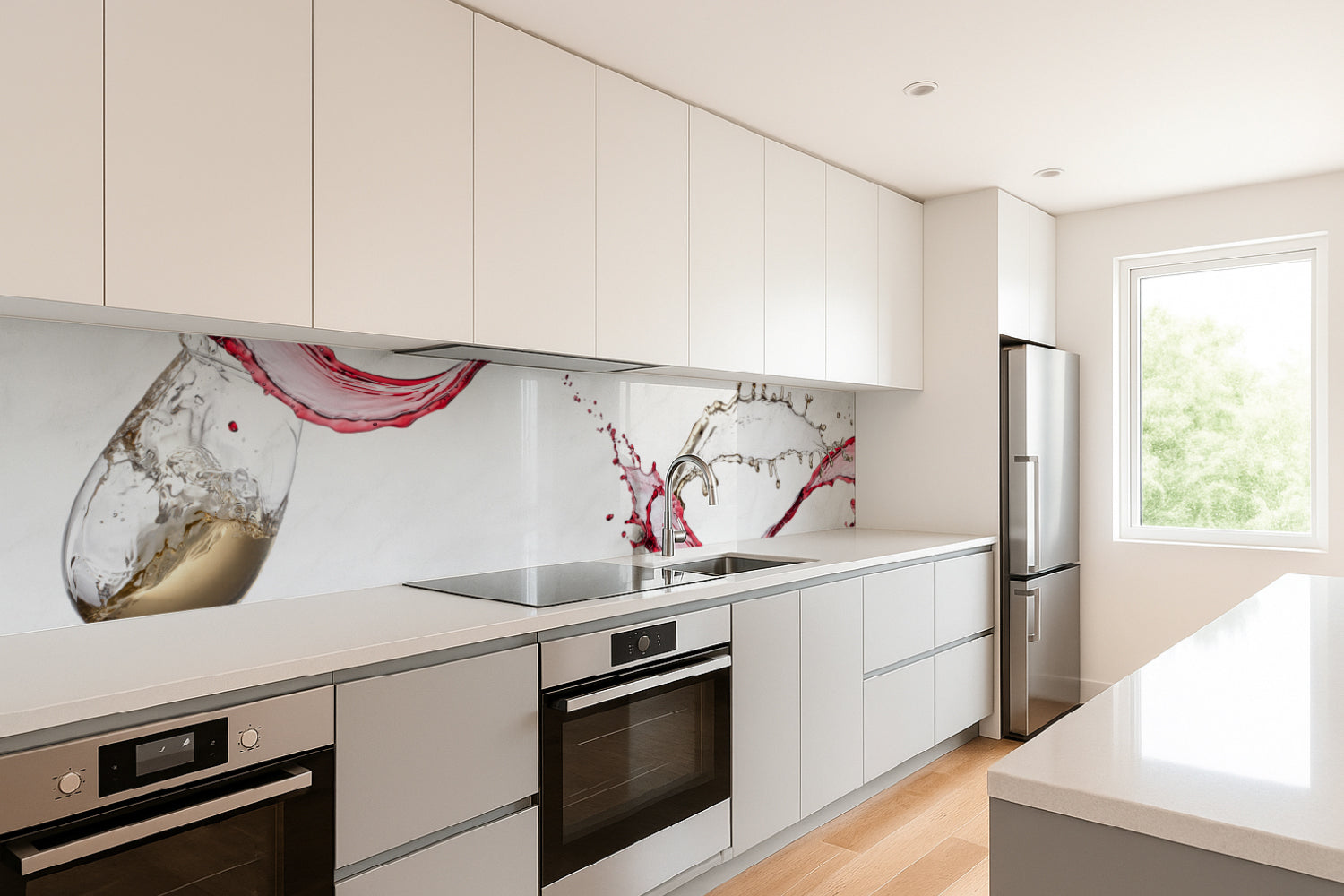Die glänzende Variante überzeugt mit intensiver Strahlkraft und einem beeindruckenden Tiefeneffekt. Farben und Motive wirken kräftiger, lebendiger und besonders detailreich. Durch die hochglänzende Oberfläche entsteht ein edler Glanz, der Licht reflektiert und dem Raum zusätzliche Helligkeit sowie ein luxuriöses Ambiente verleiht. Eine glänzende Rückwand eignet sich ideal, wenn Sie einen modernen, repräsentativen Look mit besonderer Ausdrucksstärke erzielen möchten.