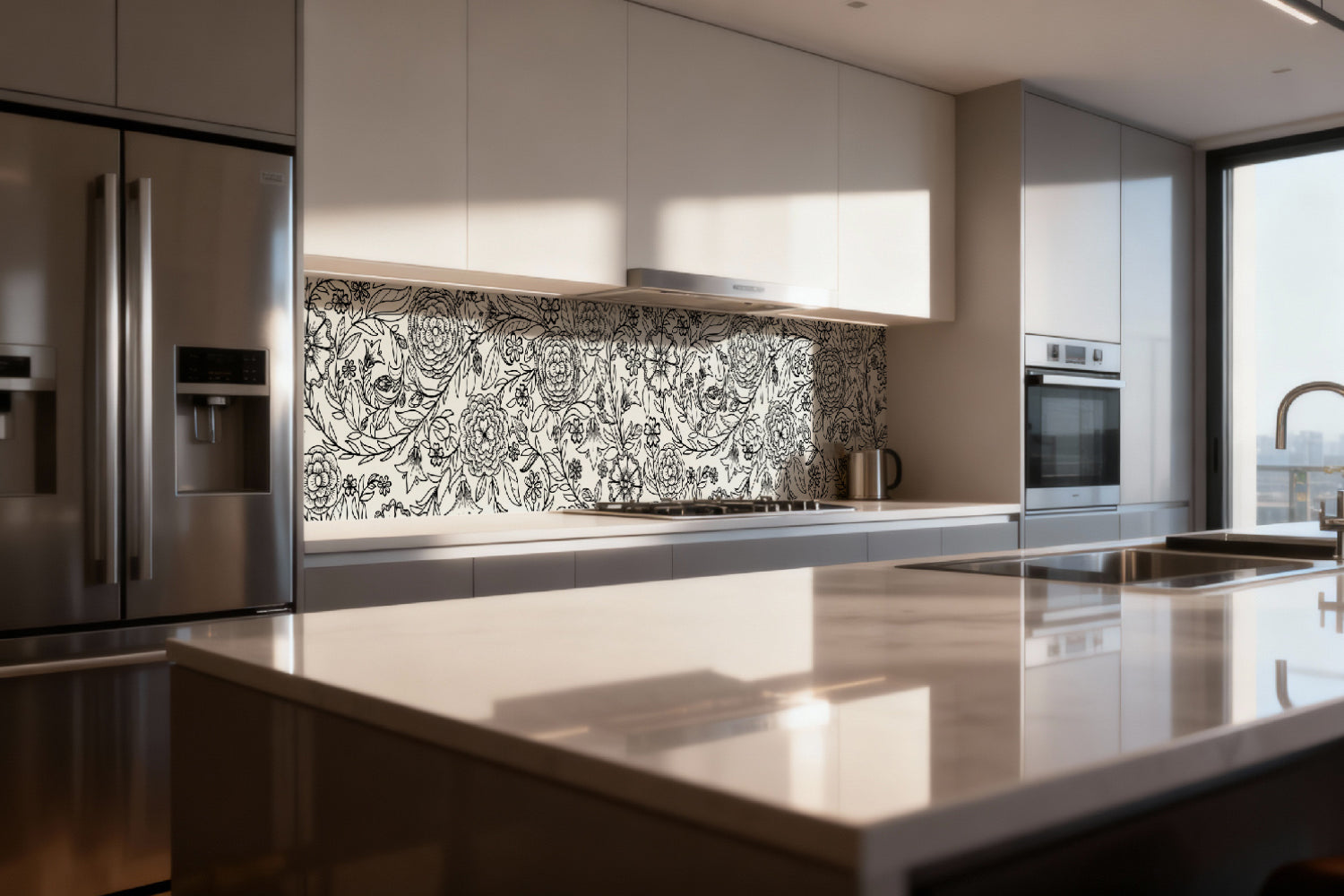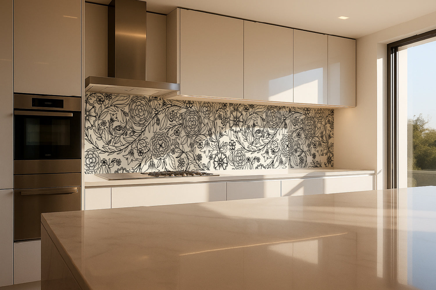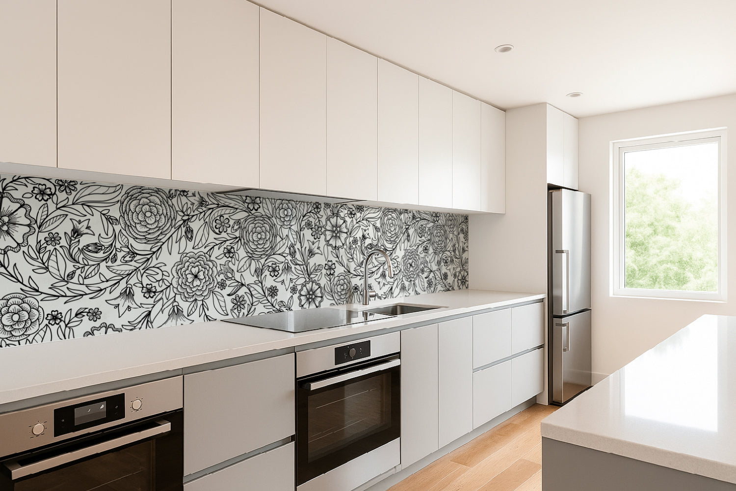 Küchenrückwand Blumenmuster Schwarzweiß