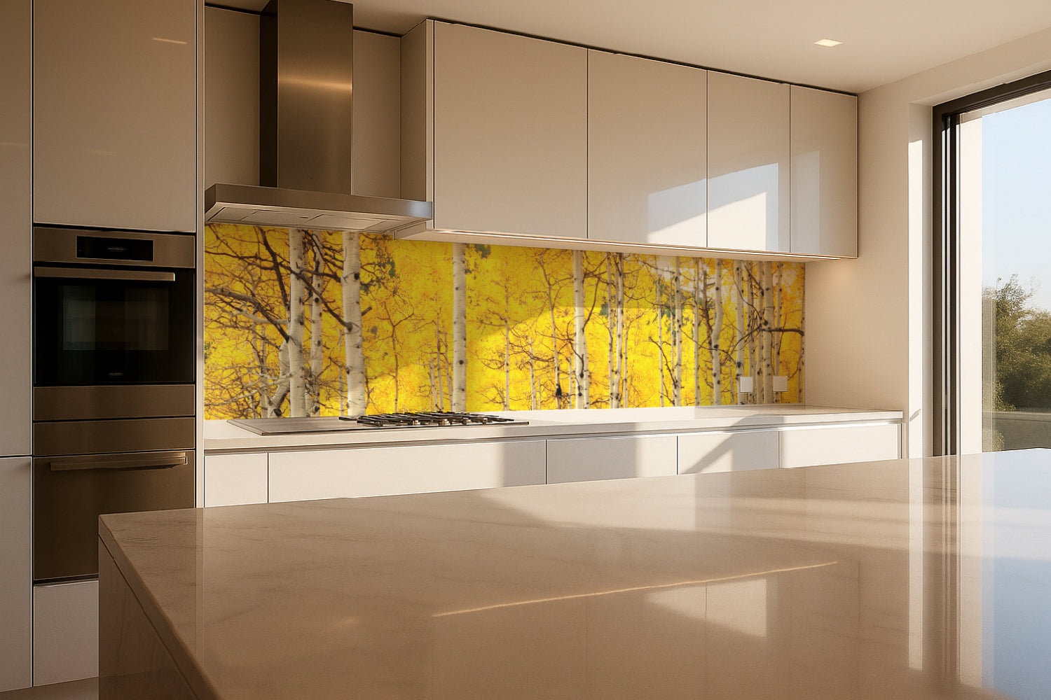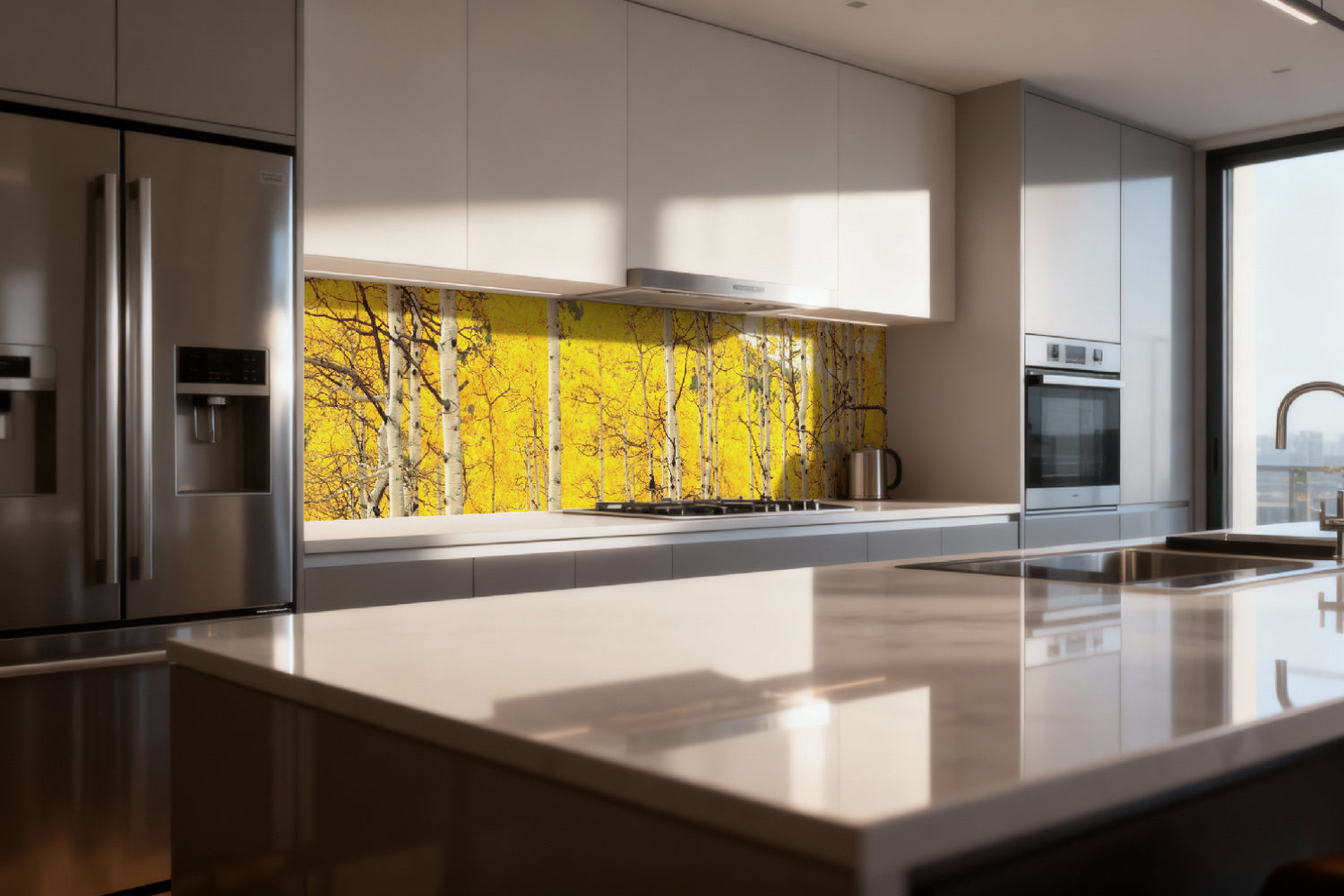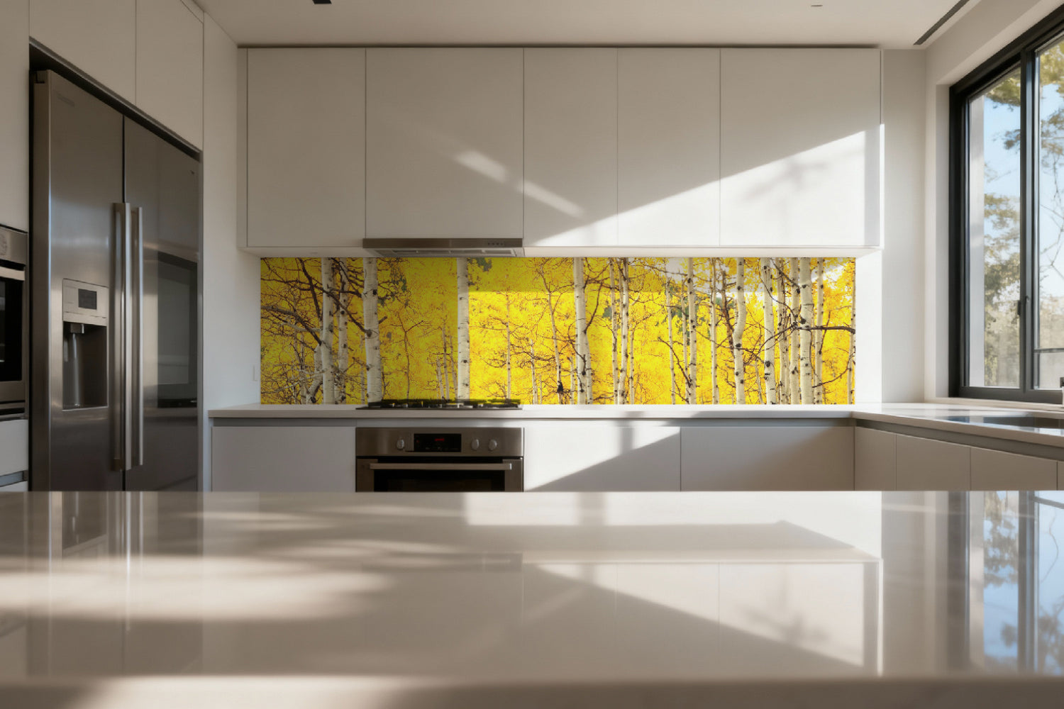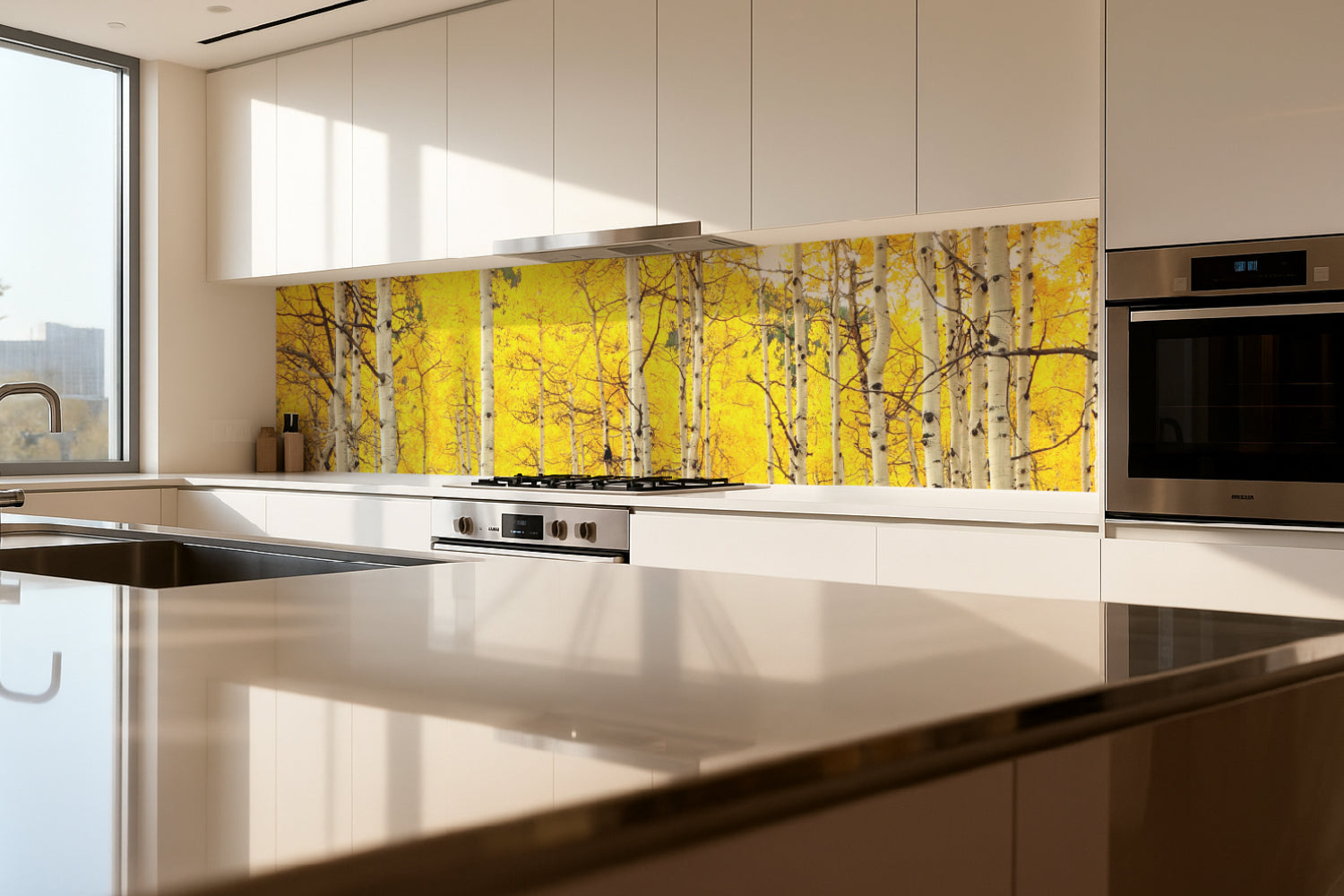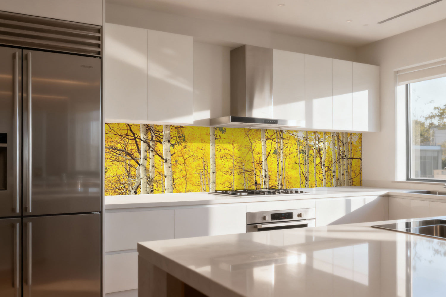 Die glänzende Variante überzeugt mit intensiver Strahlkraft und einem beeindruckenden Tiefeneffekt. Farben und Motive wirken kräftiger, lebendiger und besonders detailreich. Durch die hochglänzende Oberfläche entsteht ein edler Glanz, der Licht reflektiert und dem Raum zusätzliche Helligkeit sowie ein luxuriöses Ambiente verleiht. Eine glänzende Rückwand eignet sich ideal, wenn Sie einen modernen, repräsentativen Look mit besonderer Ausdrucksstärke erzielen möchten.