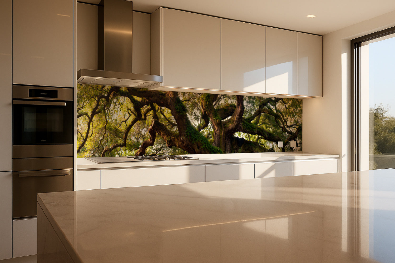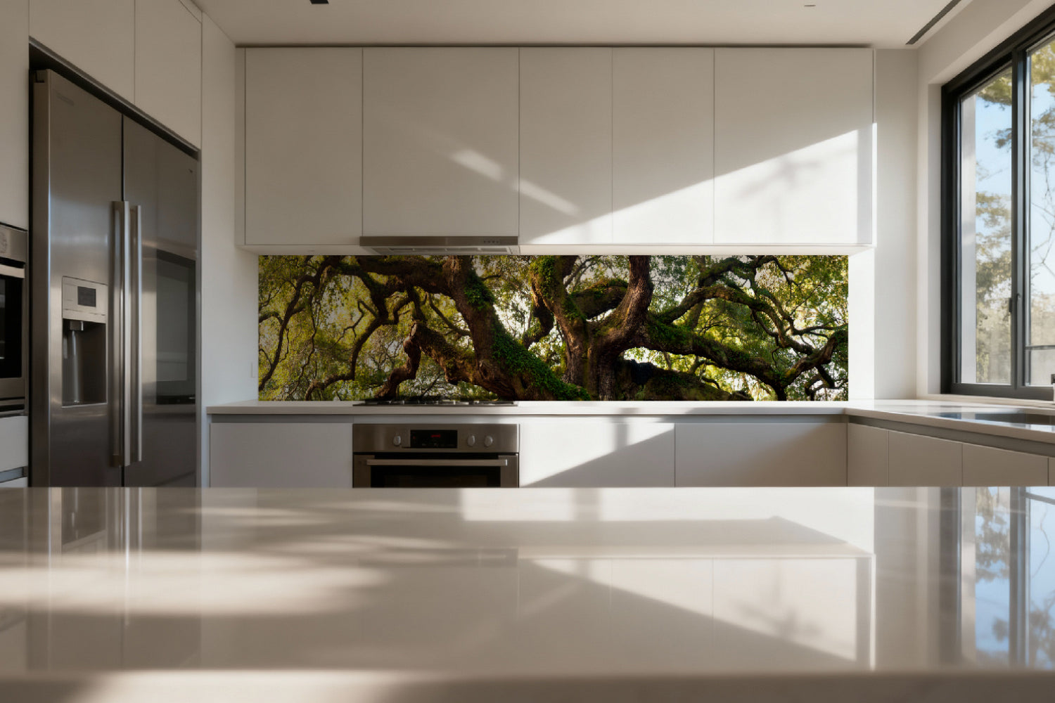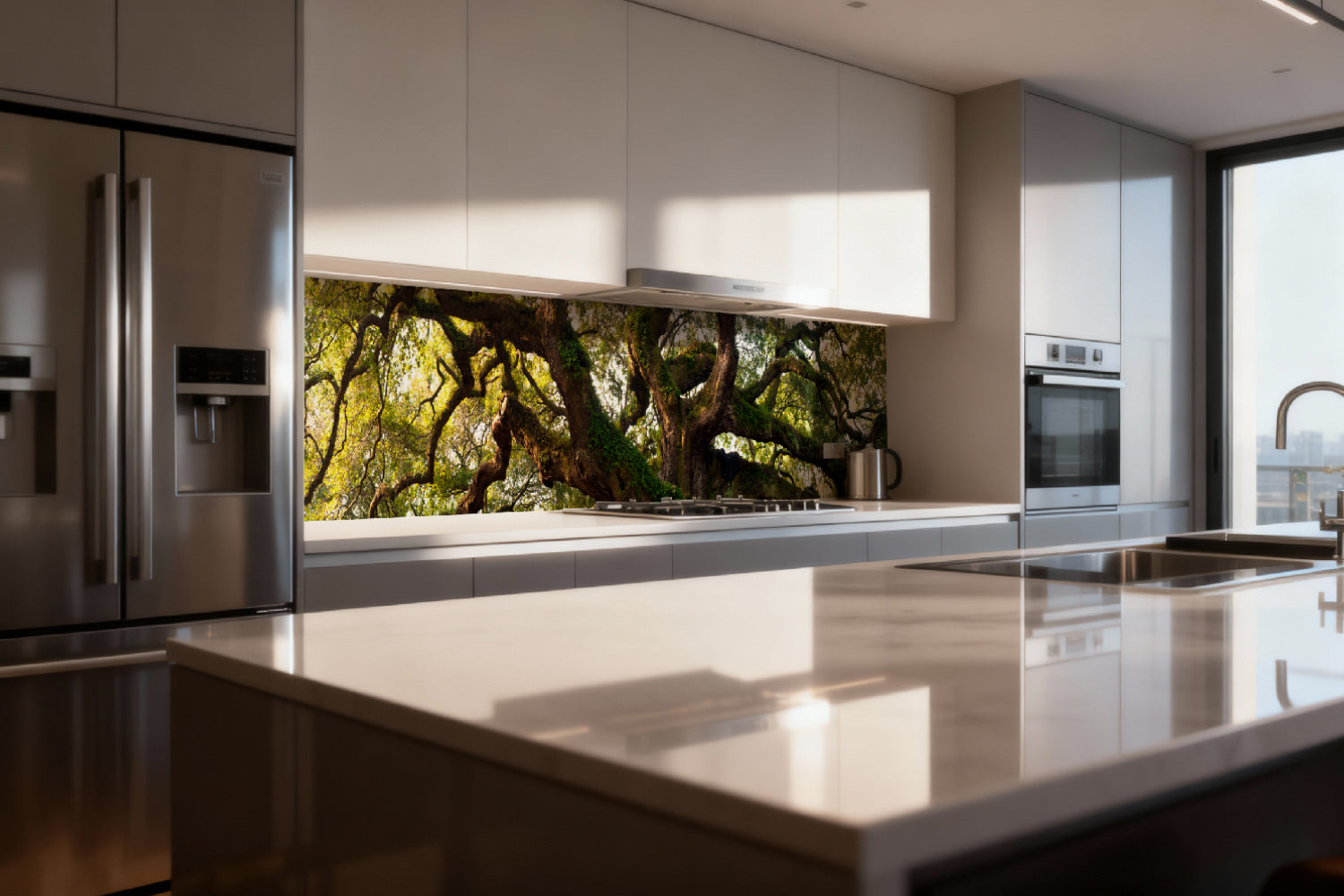Die glänzende Variante überzeugt mit intensiver Strahlkraft und einem beeindruckenden Tiefeneffekt. Farben und Motive wirken kräftiger, lebendiger und besonders detailreich. Durch die hochglänzende Oberfläche entsteht ein edler Glanz, der Licht reflektiert und dem Raum zusätzliche Helligkeit sowie ein luxuriöses Ambiente verleiht. Eine glänzende Rückwand eignet sich ideal, wenn Sie einen modernen, repräsentativen Look mit besonderer Ausdrucksstärke erzielen möchten.