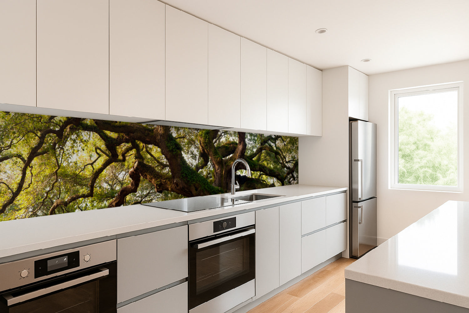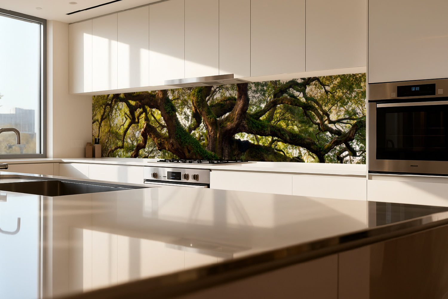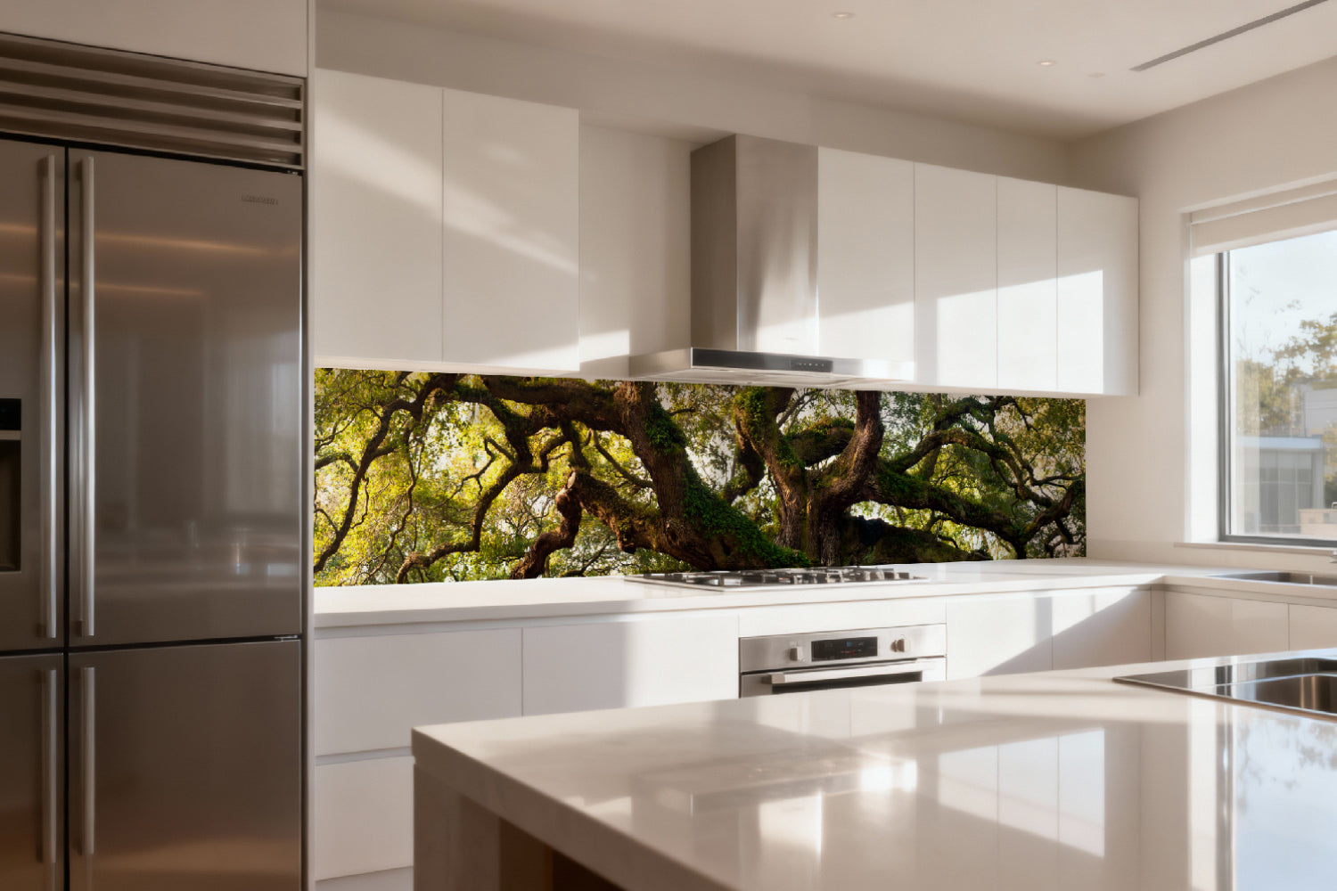 Die glänzende Variante überzeugt mit intensiver Strahlkraft und einem beeindruckenden Tiefeneffekt. Farben und Motive wirken kräftiger, lebendiger und besonders detailreich. Durch die hochglänzende Oberfläche entsteht ein edler Glanz, der Licht reflektiert und dem Raum zusätzliche Helligkeit sowie ein luxuriöses Ambiente verleiht. Eine glänzende Rückwand eignet sich ideal, wenn Sie einen modernen, repräsentativen Look mit besonderer Ausdrucksstärke erzielen möchten.