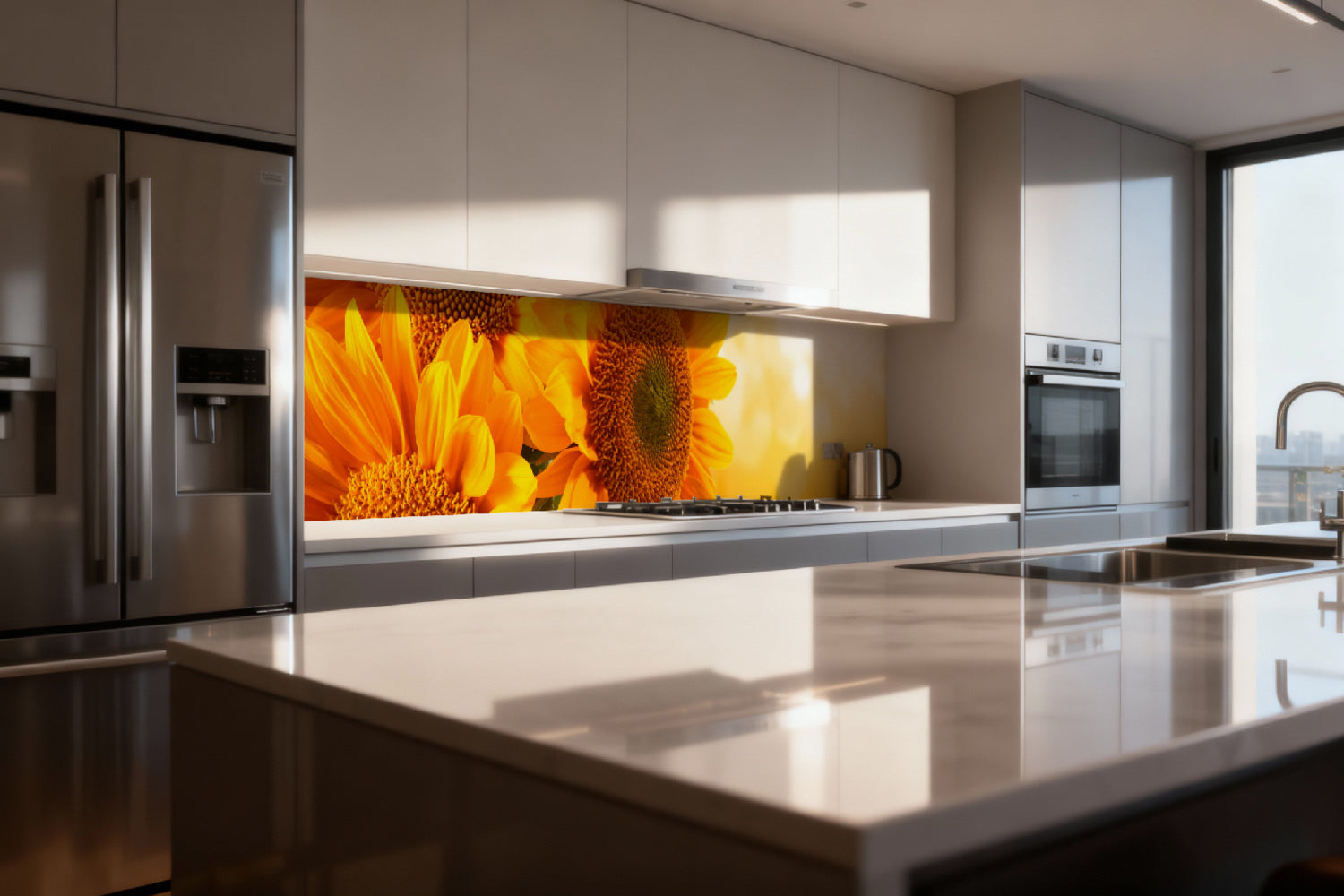 Die glänzende Variante überzeugt mit intensiver Strahlkraft und einem beeindruckenden Tiefeneffekt. Farben und Motive wirken kräftiger, lebendiger und besonders detailreich. Durch die hochglänzende Oberfläche entsteht ein edler Glanz, der Licht reflektiert und dem Raum zusätzliche Helligkeit sowie ein luxuriöses Ambiente verleiht. Eine glänzende Rückwand eignet sich ideal, wenn Sie einen modernen, repräsentativen Look mit besonderer Ausdrucksstärke erzielen möchten.