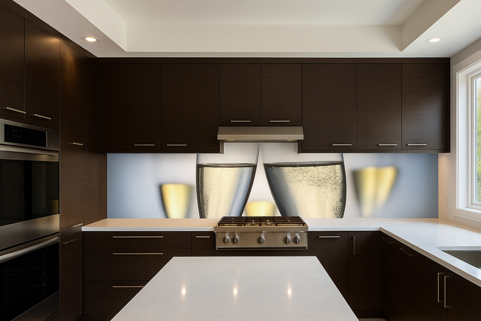 Die glänzende Variante überzeugt mit intensiver Strahlkraft und einem beeindruckenden Tiefeneffekt. Farben und Motive wirken kräftiger, lebendiger und besonders detailreich. Durch die hochglänzende Oberfläche entsteht ein edler Glanz, der Licht reflektiert und dem Raum zusätzliche Helligkeit sowie ein luxuriöses Ambiente verleiht. Eine glänzende Rückwand eignet sich ideal, wenn Sie einen modernen, repräsentativen Look mit besonderer Ausdrucksstärke erzielen möchten.